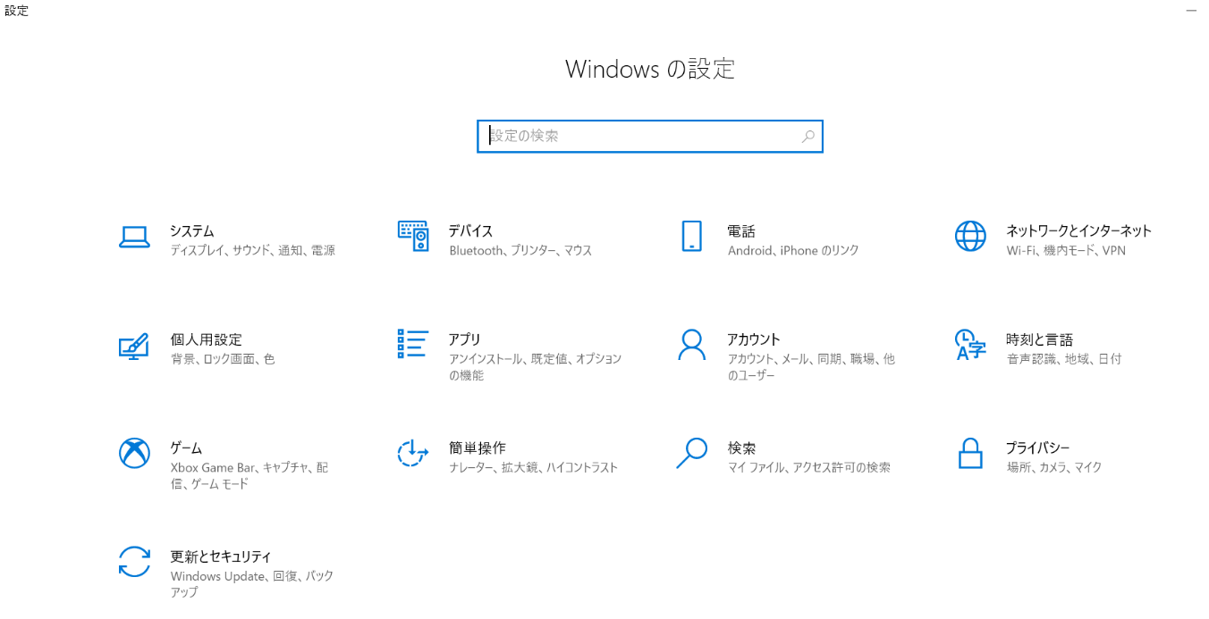 Step2: 「設定」にて「更新とセキュリティ」を選択。