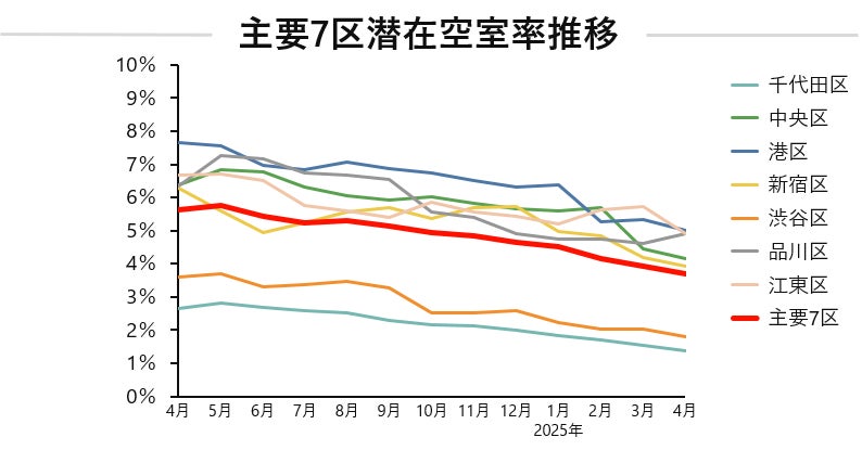 主要7区の空室率は3.70%で前月比-0.24pt。