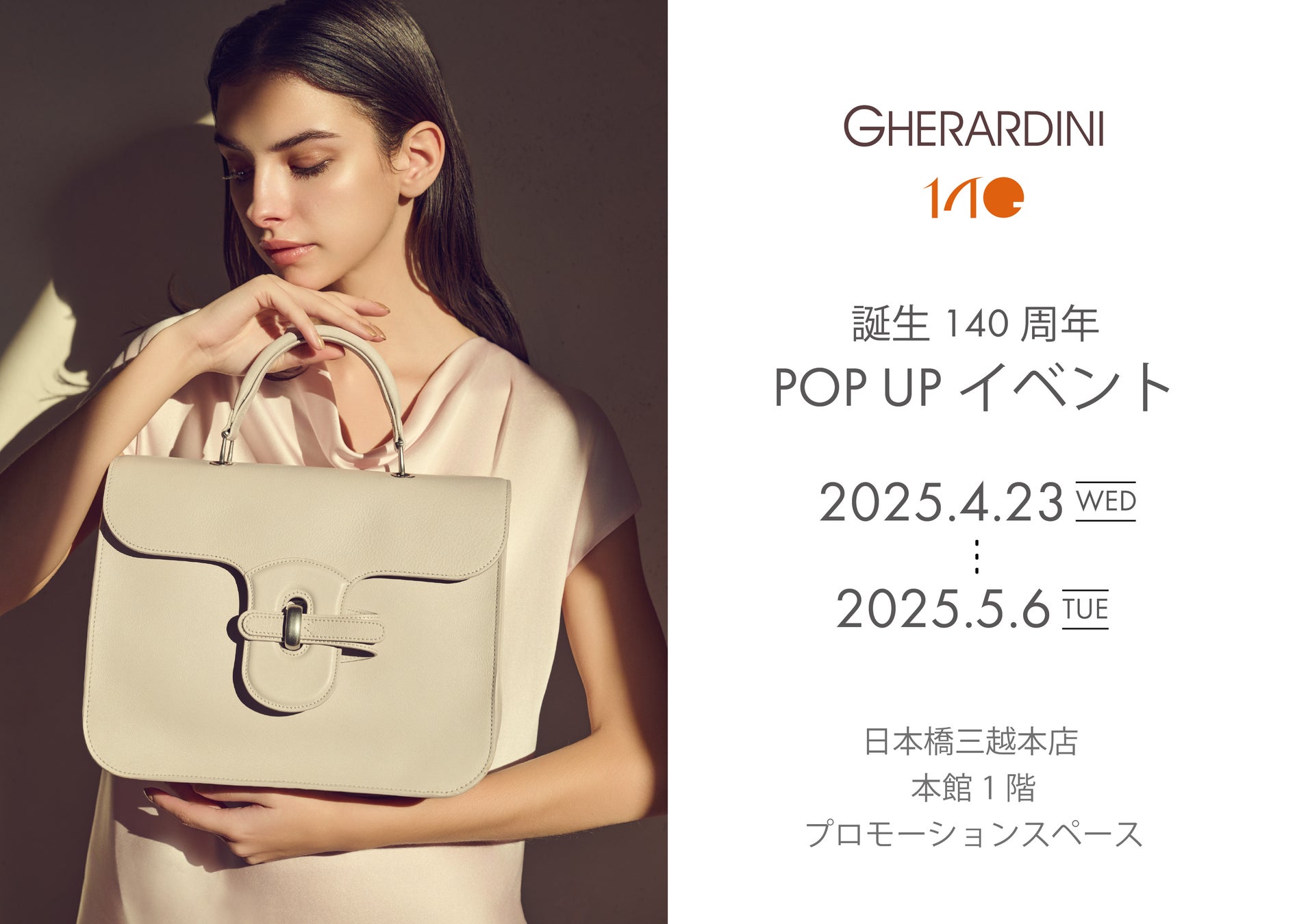 芸術の都フィレンツェで誕生したGHERARDINI は、2025年に創業140周年を迎えます。この記念すべき節目を祝し、日本橋三越本店 本館1階 にて、期間限定POP UPイベントを開催いたします。