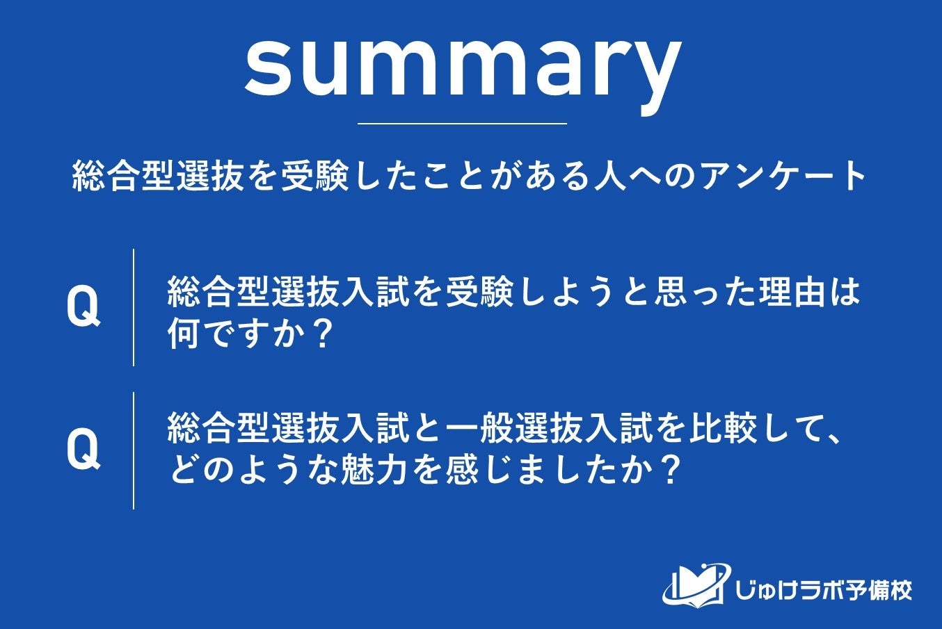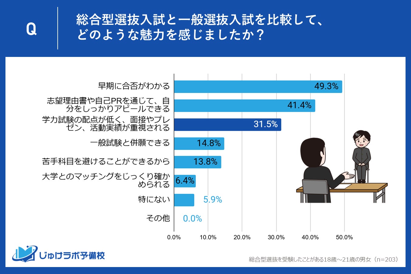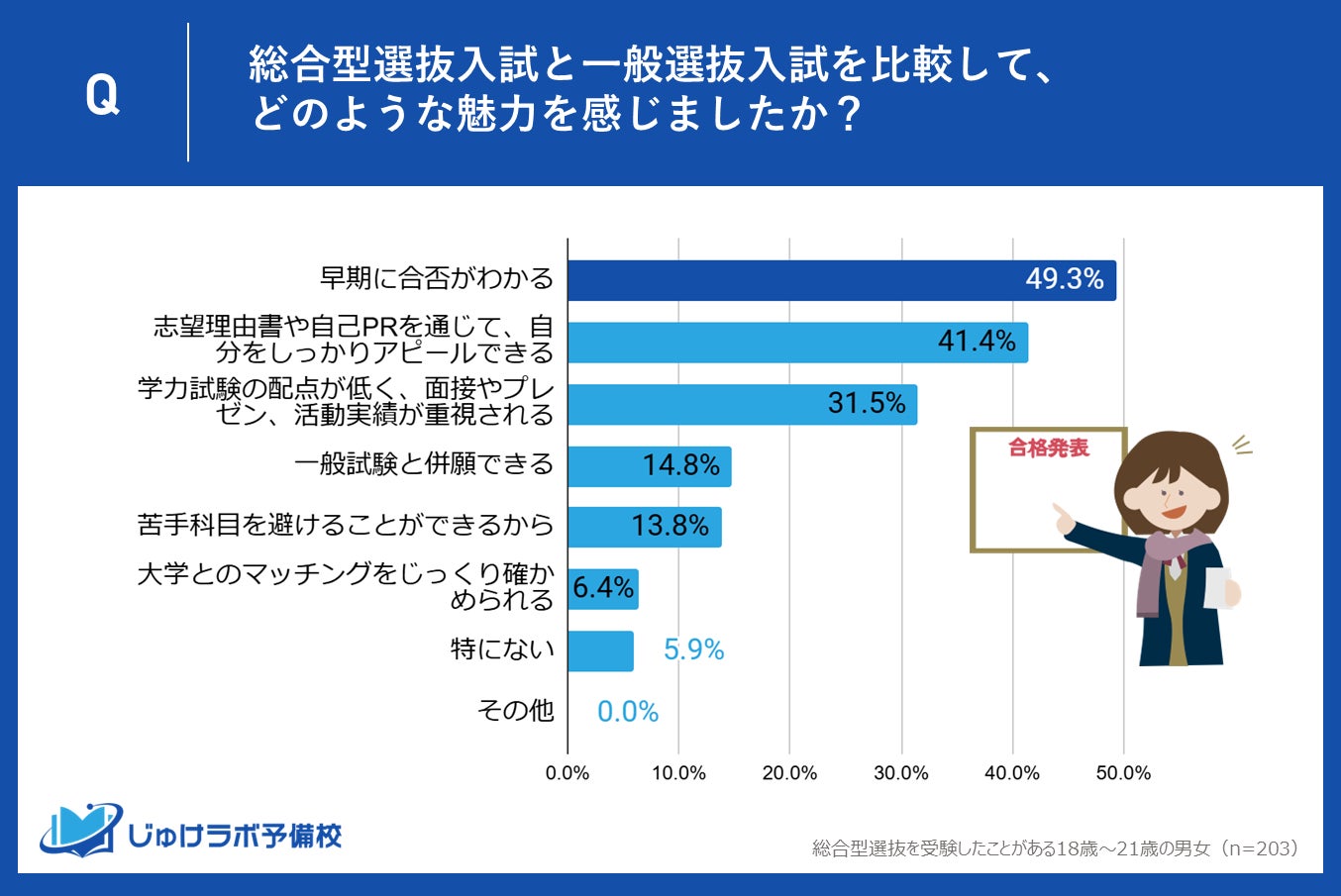 じゅけラボ予備校(所在地:大阪市北区、代表取締役:後藤智則)は、総合型選抜入試で大学受験をした18歳〜21歳の男女203人を対象に、総合型選抜入試を選んだ理由・魅力に関する実態調査を実施しました。