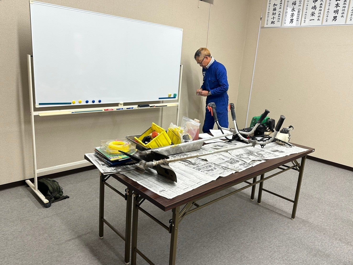 清掃や部品チェックの具体的な手順を、実物を使って学ぶ機会を提供。参加者全員が自分の手で刈払機をメンテナンスする方法を習得しました。