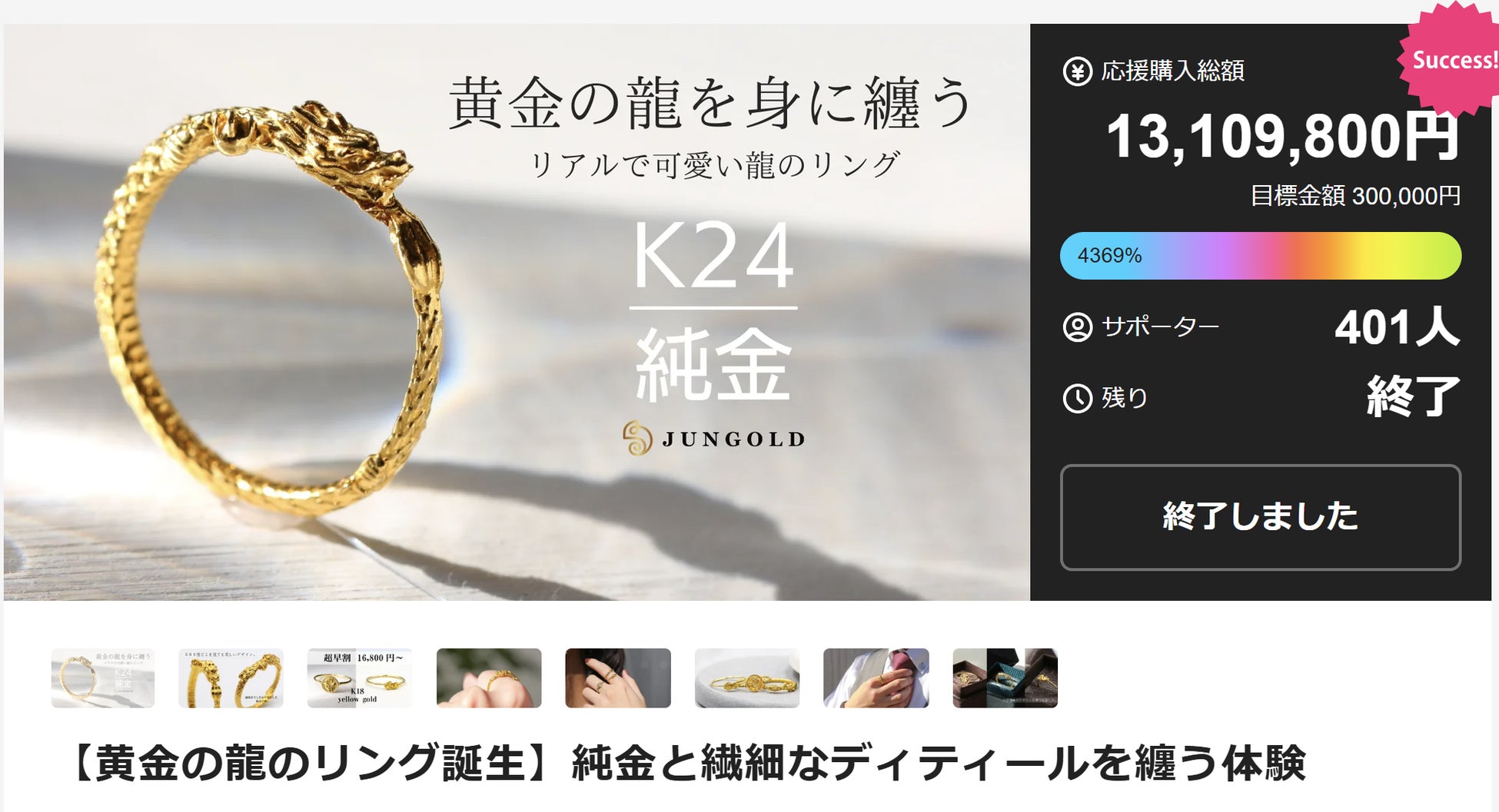 「純金の龍」シリーズは、これまで 合計5,000万円以上 の売上を誇るJUNGOLDの代表的な商品です。