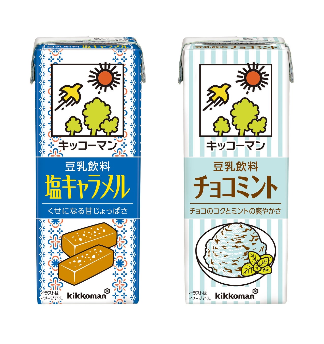 キッコーマンソイフーズ株式会社は、5月26日に、「キッコーマン 豆乳飲料 塩キャラメル」「キッコーマン 豆乳飲料 チョコミント」を全国で新発売します。なお、本品は9月末までの期間限定で販売します。
