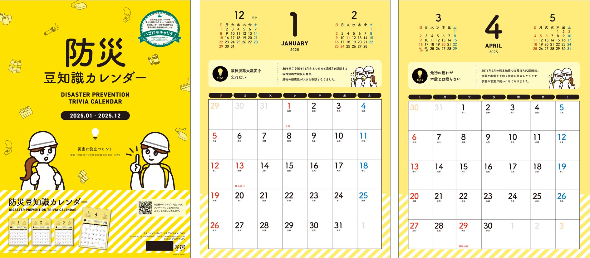 防災 豆知識の内容は、危機管理の専門家・国崎信江先生の監修を受けて、実践的で信頼性の高い情報が提供されています。更には日常生活に取り入れやすい形で情報を整理し、カレンダーに自然に防災意識を高める要素を組み込みました。毎月少しずつ学べるように工夫された内容が、実用性と学びを兼ね備えています。
