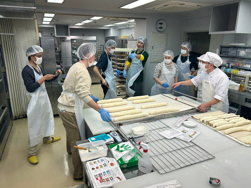 この度の寄贈では約30種類の冷凍パンや冷凍生地を寄贈しています。昭和基地内でおいしくお召し上がりいただく為に、隊員の皆様は出発前に株式会社ベーカリーシステム研究所(フジパングループ)の施設で、社員からパン作りの基本から冷凍パンの焼き方まで、パン作りをマスターしていただく研修を行っています。