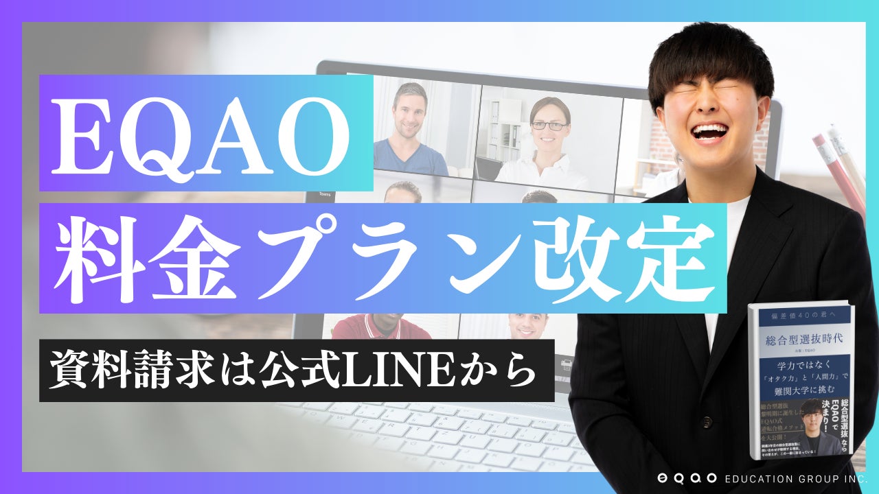 このたび、総合型選抜専門塾EQAOは料金プランを改定いたします。驚異の志望校合格率94.55%を誇るEQAOが、受験生を全力サポートします!難関私立大学に総合型選抜での受験を検討の方はEQAO一択!