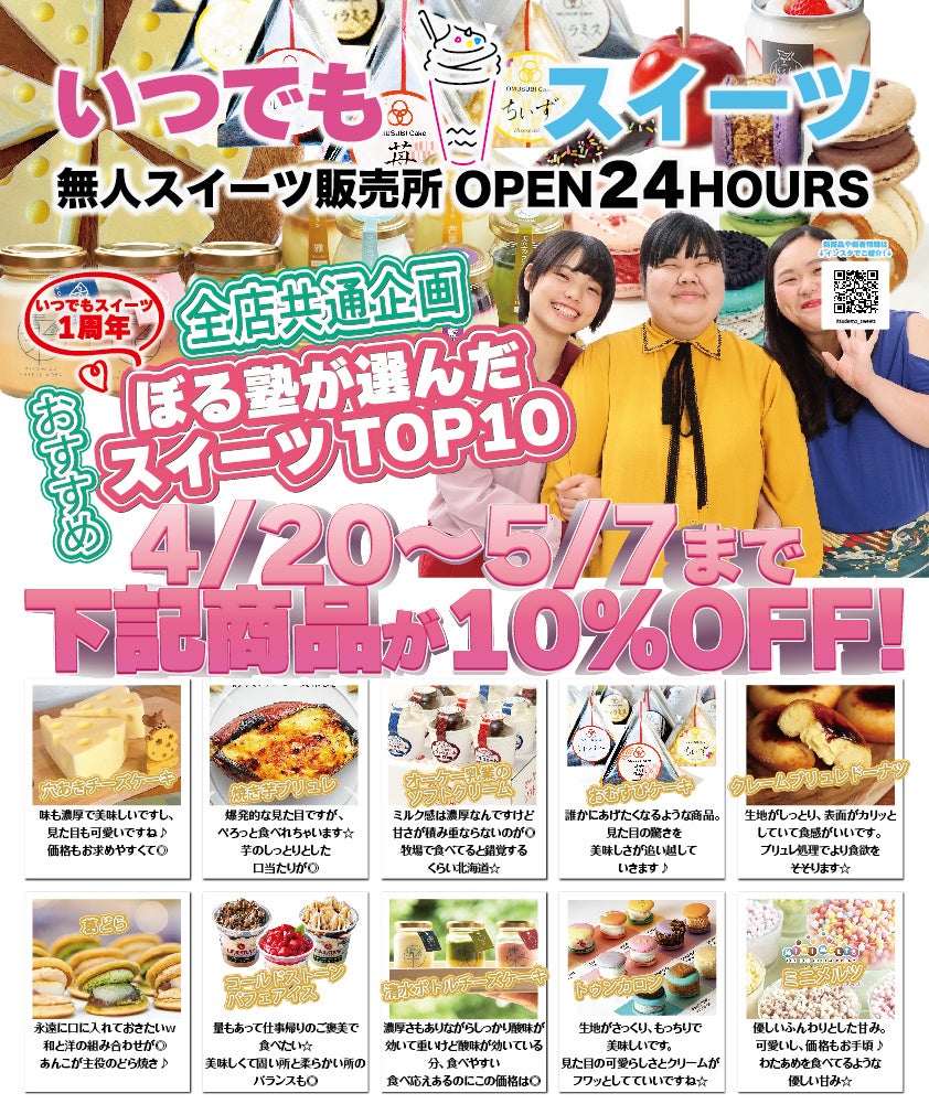 いつでもスイーツ1周年特別企画【ぼる塾の試食でスイーツトップ10が決定】1周年特別企画として選ばれたスイーツ10商品を特別価格でご提供!!