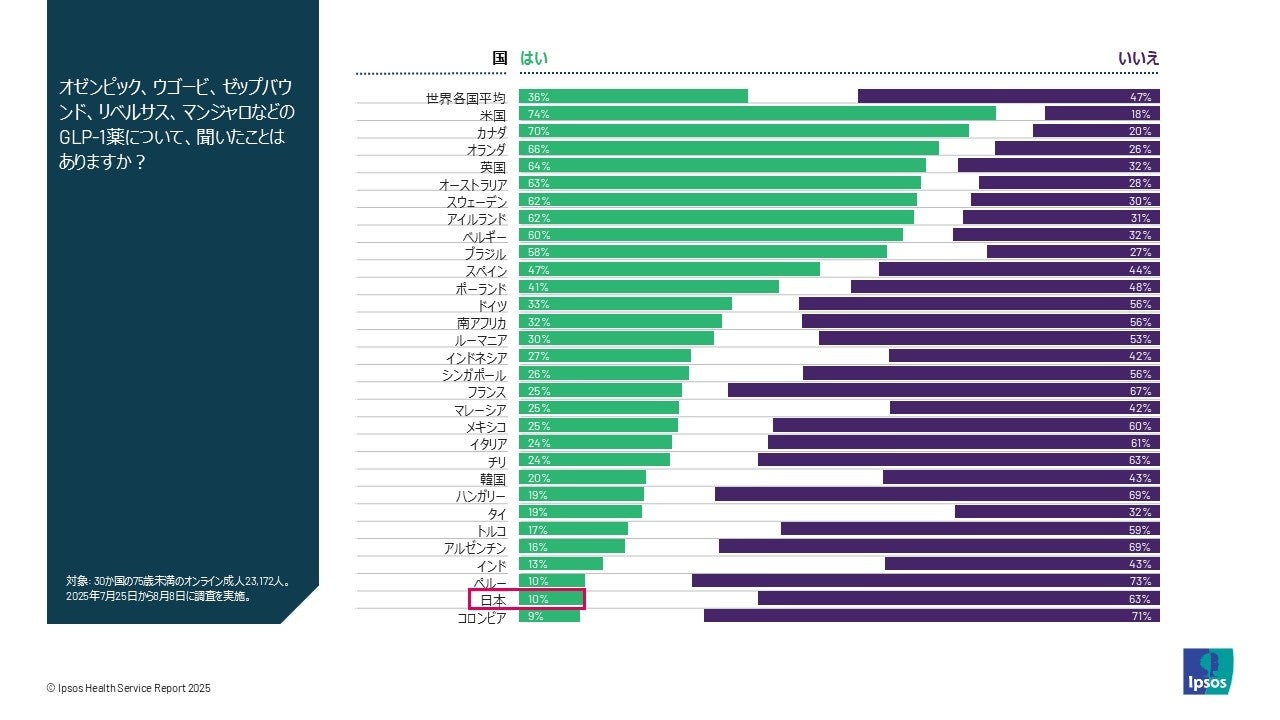 世界で広がるGLP-1薬の認知、日本ではわずか10%―若年層に“マンジャロ”がSNSで話題 | Ipsos