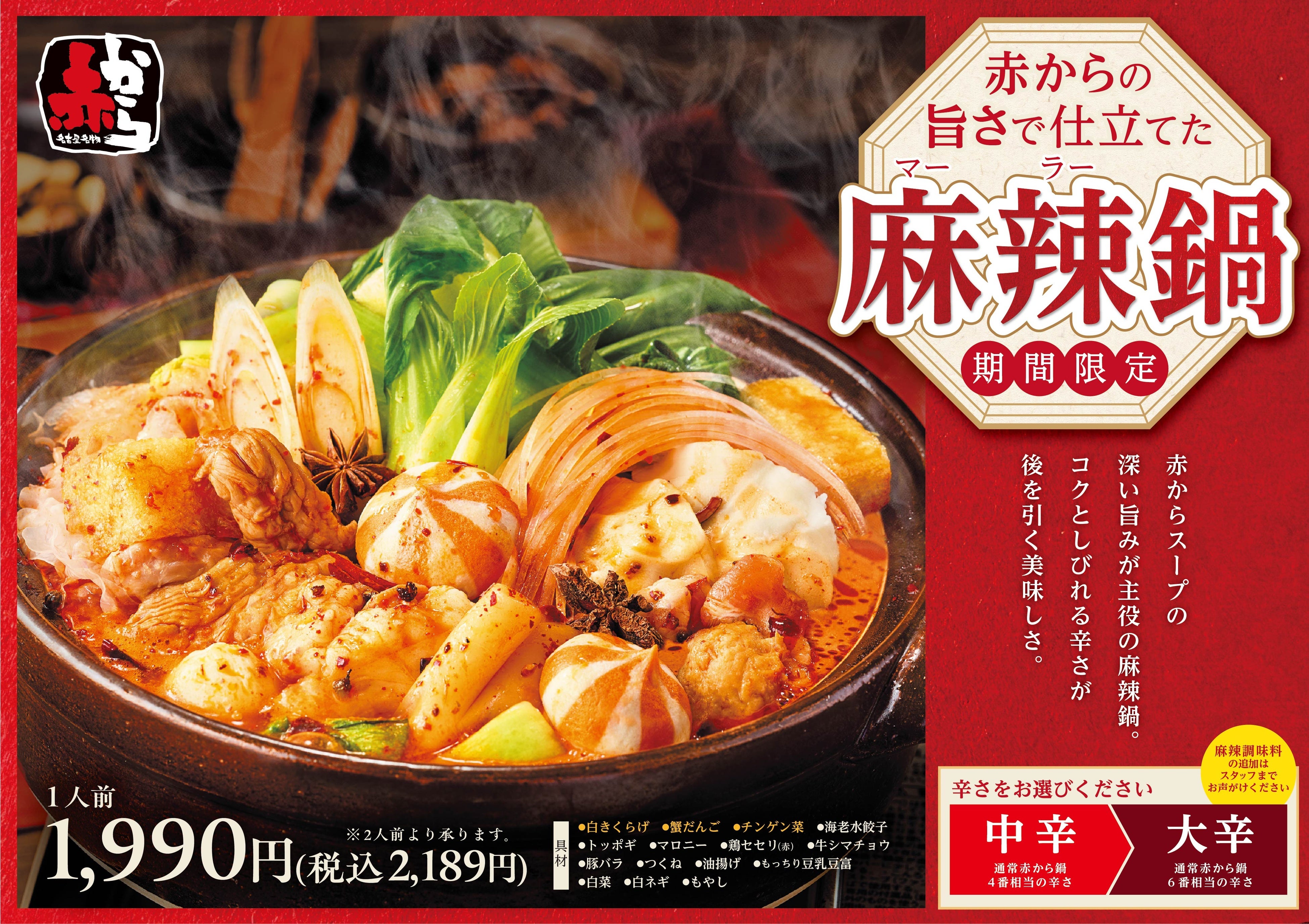 赤からのコク×麻辣のしびれが絶妙に調和!【赤から】しびれる旨辛の「赤から麻辣鍋」を4月1日(水)より期間限定で販売