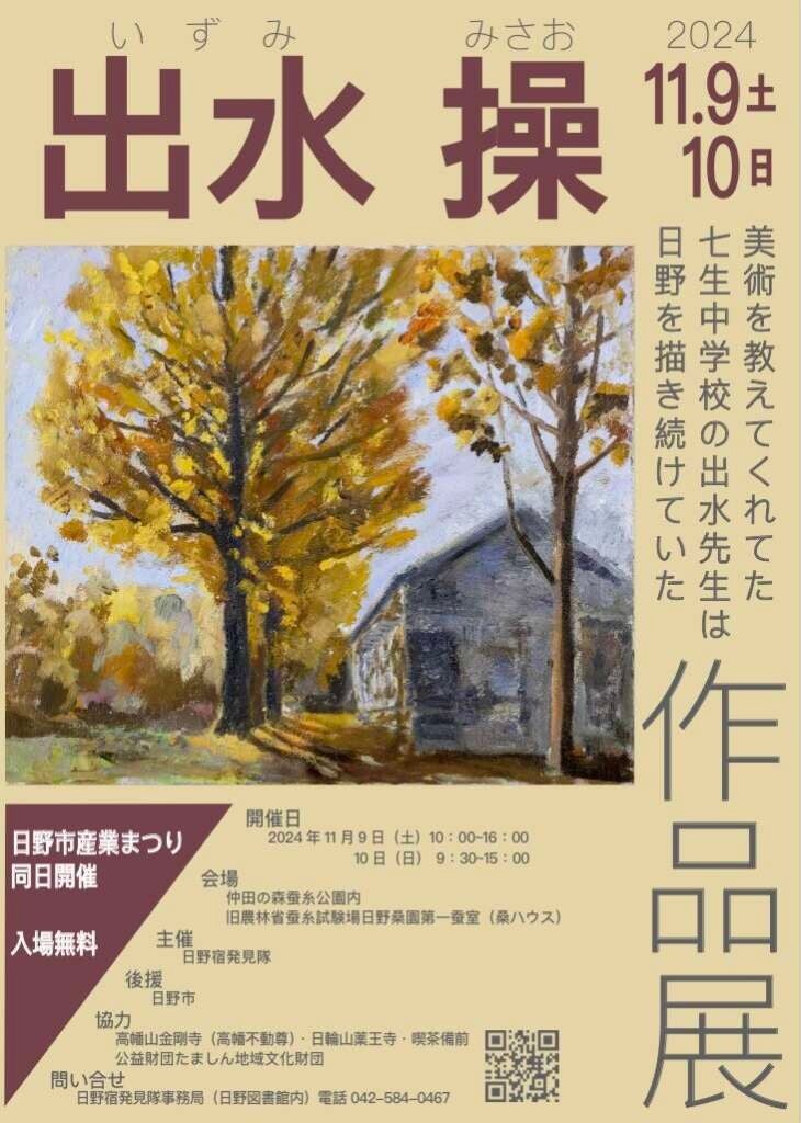 地域の市民団体・日野宿発見隊(※)が、日野市に居住していた画家・出水操(元七生中学校美術科教員)が描いた日野の風景画を仲田の森蚕糸公園内の桑ハウスに展示します。