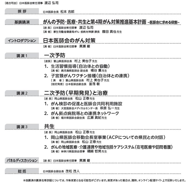 【日本医師会】一般参加OK!シンポジウム「がん対策~予防、医療、共生~」