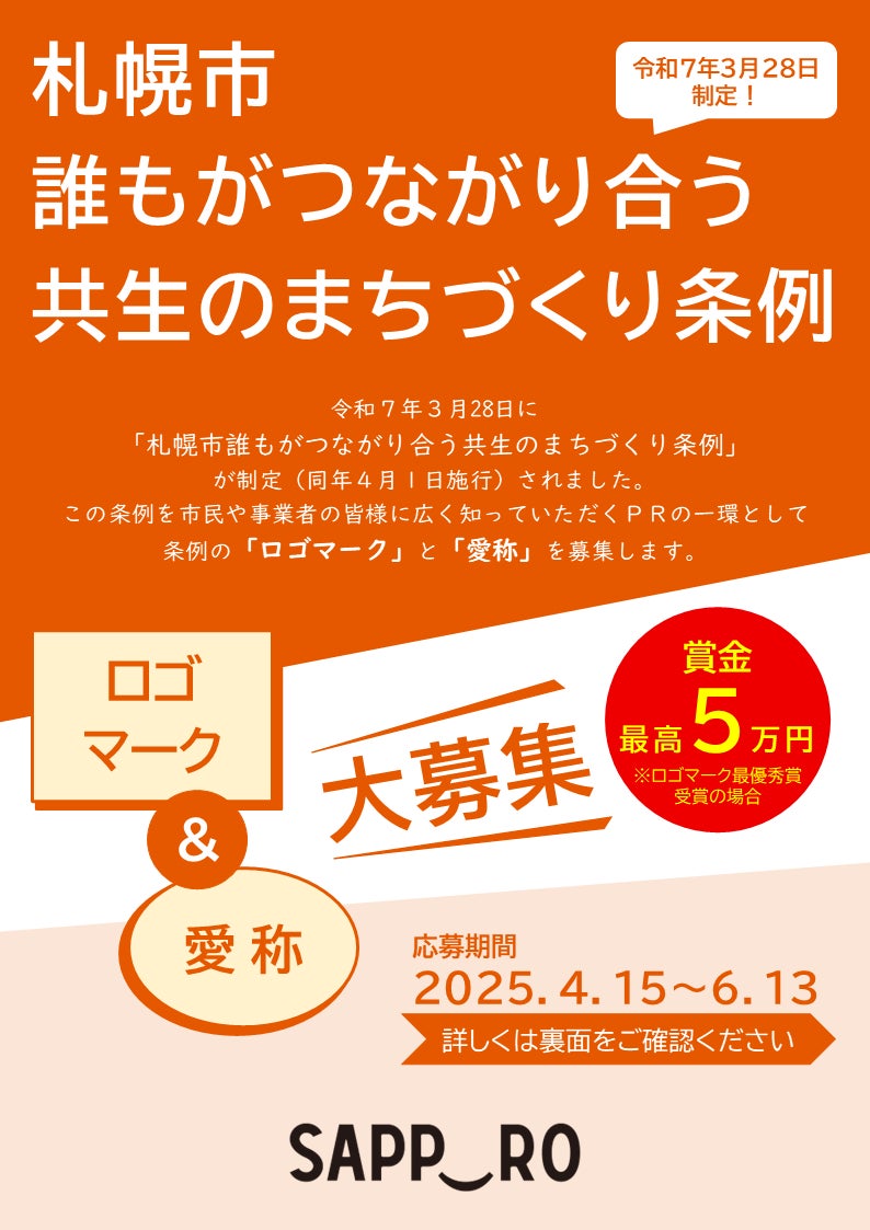 「札幌市誰もがつながり合う共生のまちづくり条例」のロゴマーク・愛称を募集します!