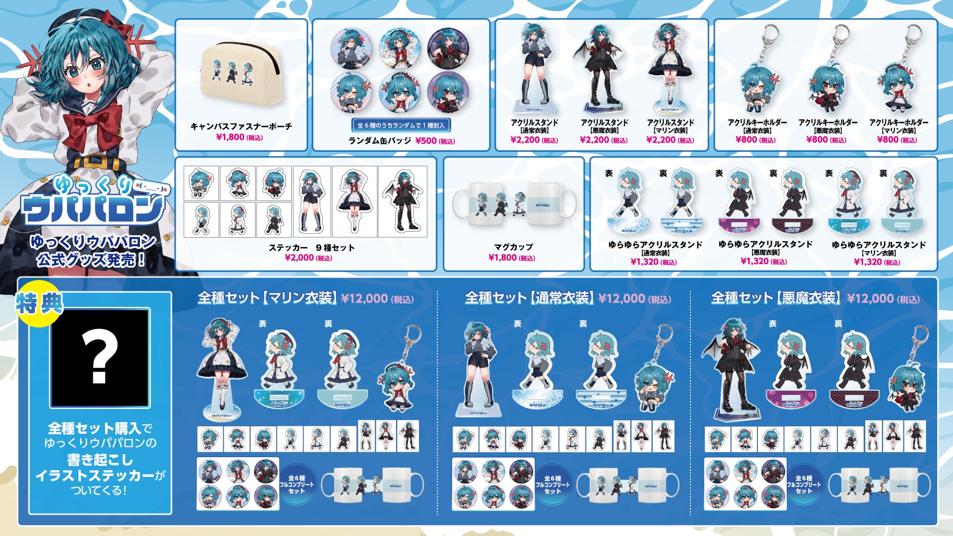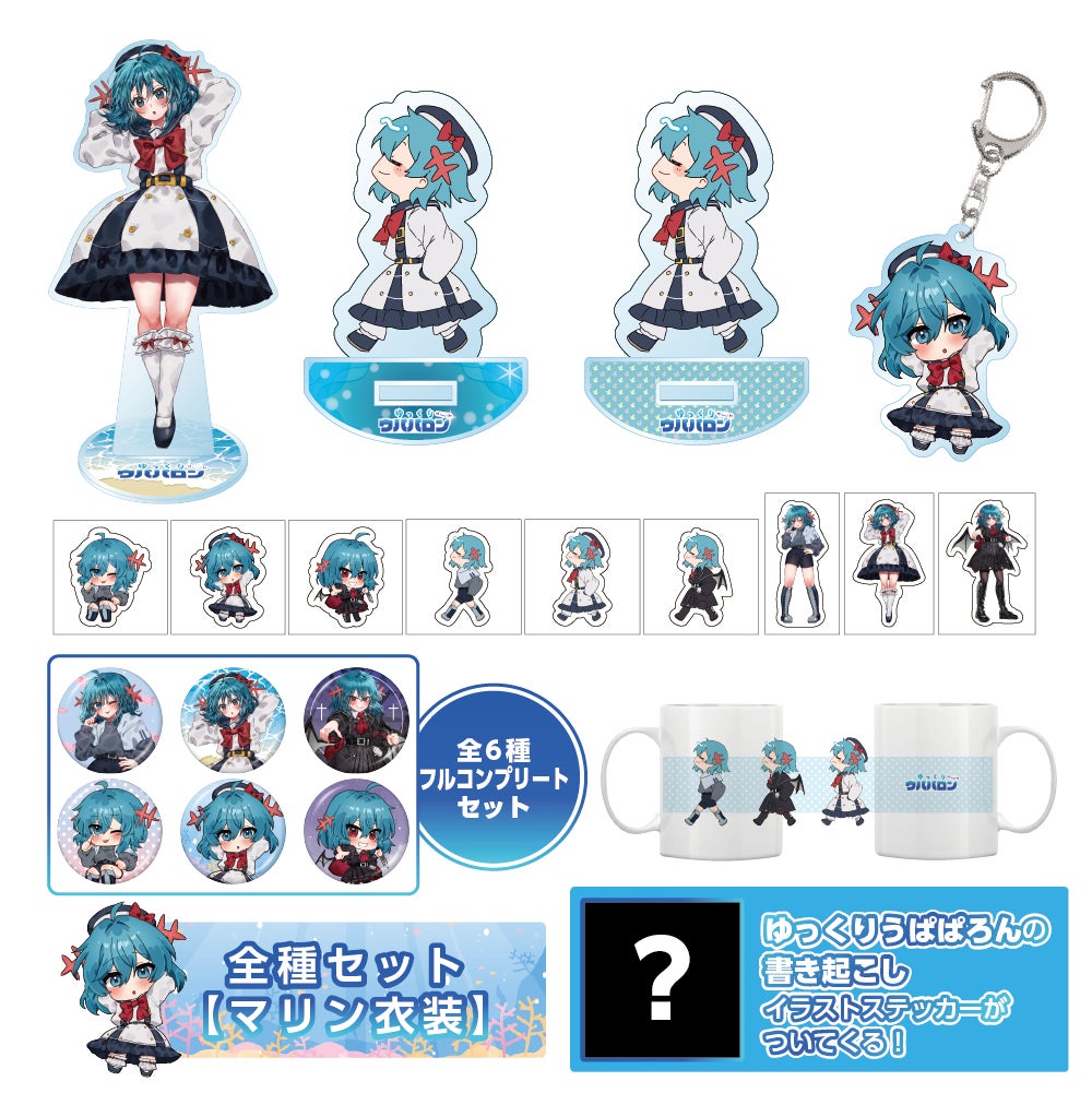 ゆっくりウパパロンのグッズ【マリン衣装】の全種セットです。