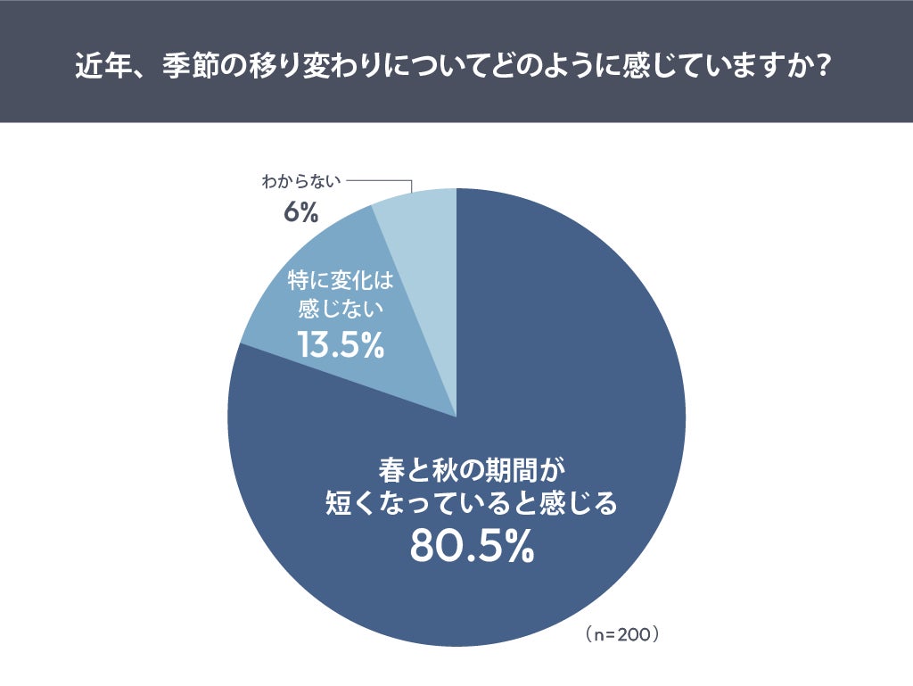 その影響もあり、回答者の約8割が季節変化に明確な違和感を覚えていることが判明しました。