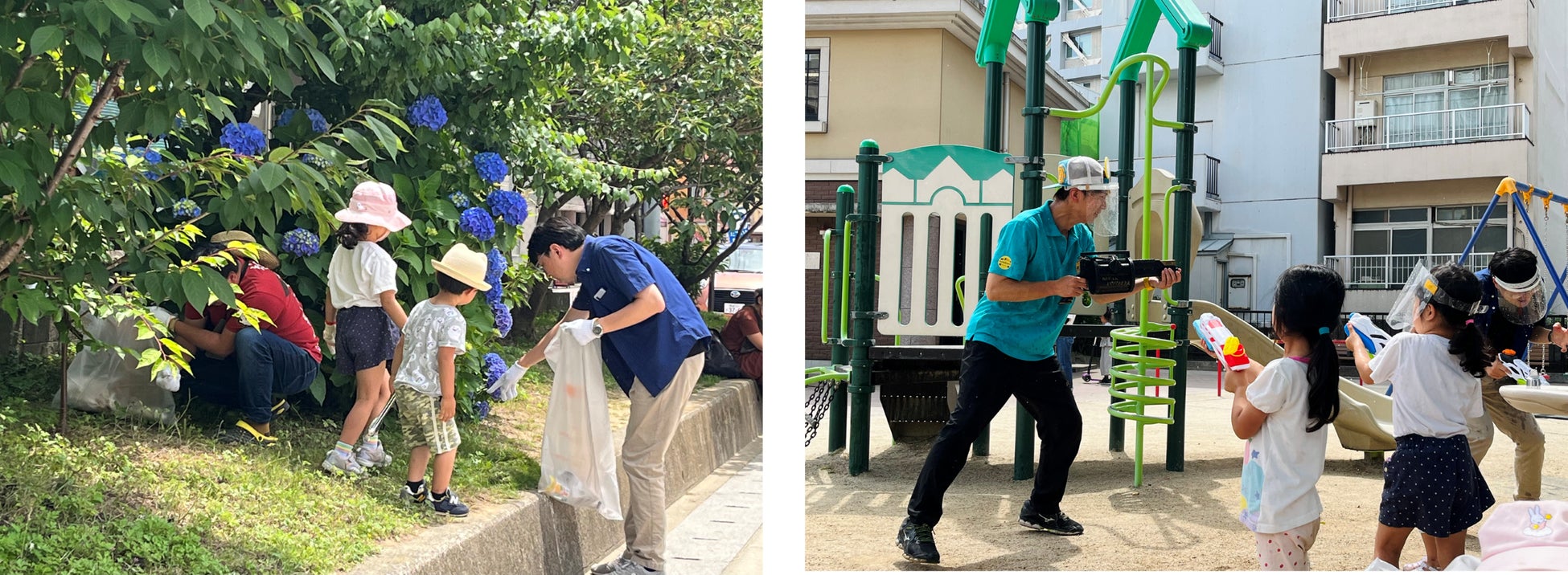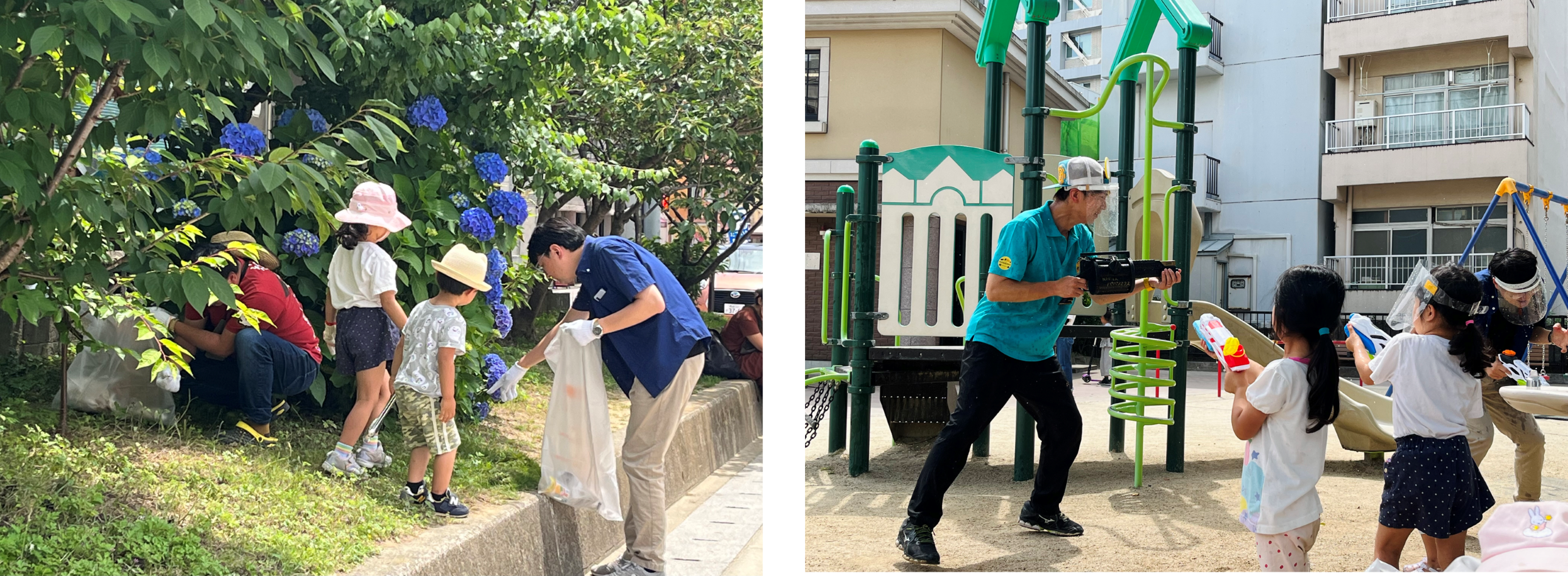 長崎県のパパ同士の情報交換の場作りと、父親の育児参加促進への寄与を目的とし活動する『長崎パパ友グループ』。当事務所の長崎支店長 弁護士・河合誠が代表を務め、アディーレはこの活動に全面協力しています。『長崎パパ友グループ』は2023年3月に長崎市・男女共同参画推進センター(アマランス)の利用登録団体となりました。そして5月27日(土)、第1回イベント『長崎パパ友グループお遊び会』を長崎市のめがね橋電停そばの中央公園で開催しました。当日は、参加いただいたお子さまたちと一緒に中央公園や周辺の歩道、駐車場などを親子で歩きながらゴミ拾いを実施。ゴミ拾いのあとは親子で楽しむ水鉄砲大会を開催し、たくさんの笑い声と笑顔あふれるイベントとなりました。