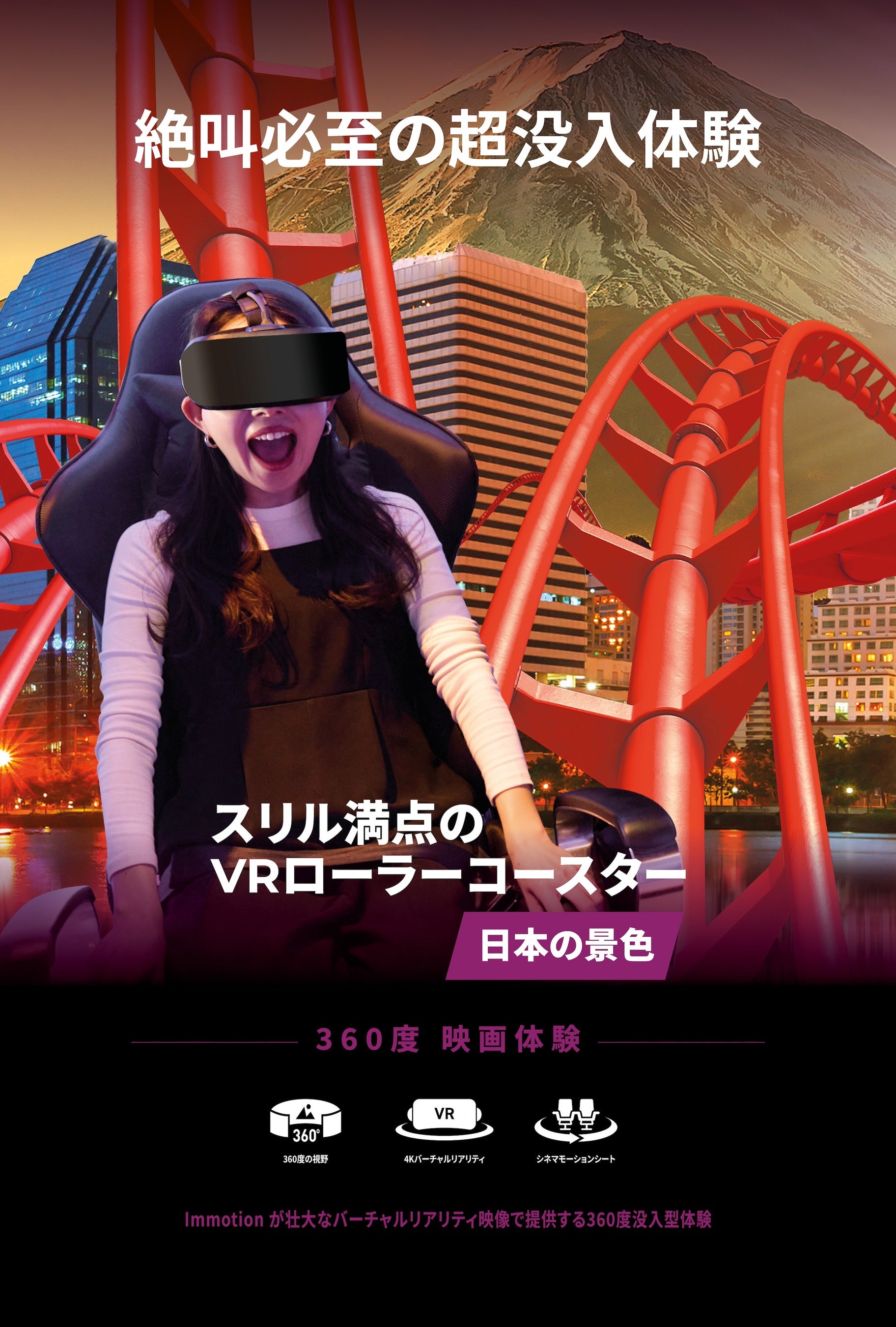 「スリル・コースター」は、VRヘッドセットを装着することで、仮想空間で繰り広げられる、息をのむような迫力満点のジェットコースター体験を提供します。360度に広がる日本の景色、そして日本の象徴である富士山を見渡しながら、急上昇や急降下、予測不能な旋回など、現実世界では味わえないスリルと興奮を安全にお楽しみいただける絶叫体験です。まるで空を飛んでいるかのような浮遊感や、想像を超えるスピード感を五感で体験してください。