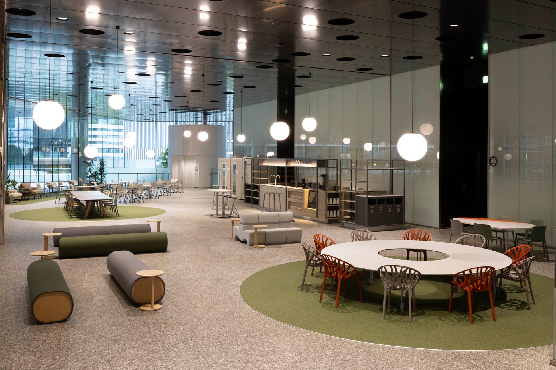 Cafe&Co-workは「循環」をコンセプトに、環境に配慮したドリンクやアップサイクルスナック、グルテンフリーな軽食などを用意したカフェスペースです。併設するコワーキングエリアや待合スペースは、どなたでも自由にご利用いただけます。
