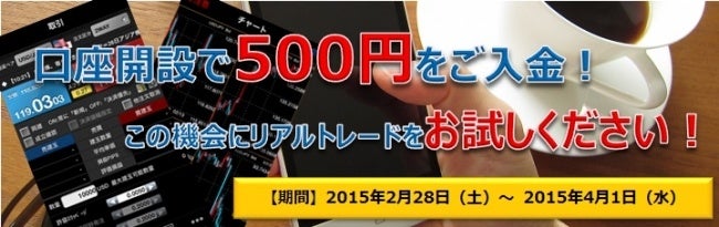 SBI FXトレードが提供する外国為替証拠金取引「SBI FXTRADE」は、2015年2月28日(土)より新規に口座開設頂いたお客様を対象に500円入金企画を実施しました。