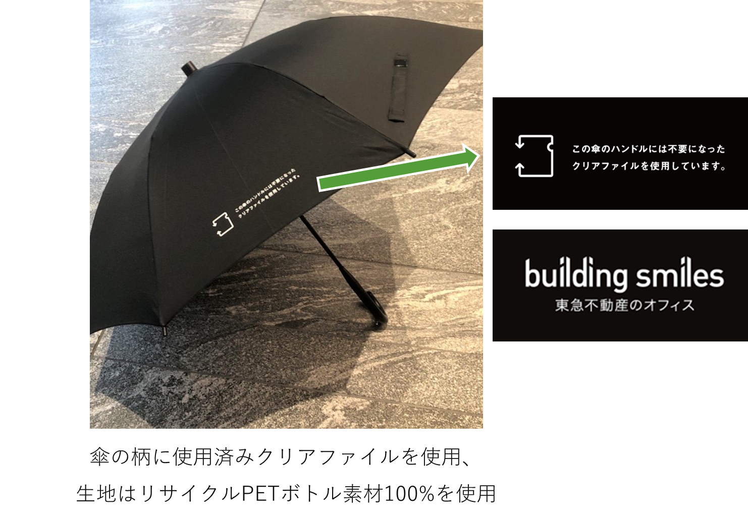 ~「環境で選ばれる施設」に向けたプロジェクト 第2弾~ オフィスビルで回収した「使用済みクリアファイル」を貸出傘に再生