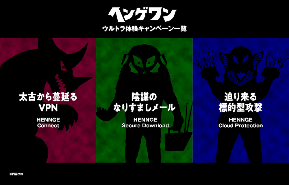 HENNGE株式会社(本社:東京都渋谷区、代表取締役社長:小椋 一宏、以下、HENNGE)は、企業が取り組むべきセキュリティ対策「標的型攻撃対策」「脱PPAP」「脱VPN」の推進を目的に、ウルトラマンシリーズに登場するウルトラ怪獣をイメージキャラクターに起用したキャンペーンを本日より実施します。