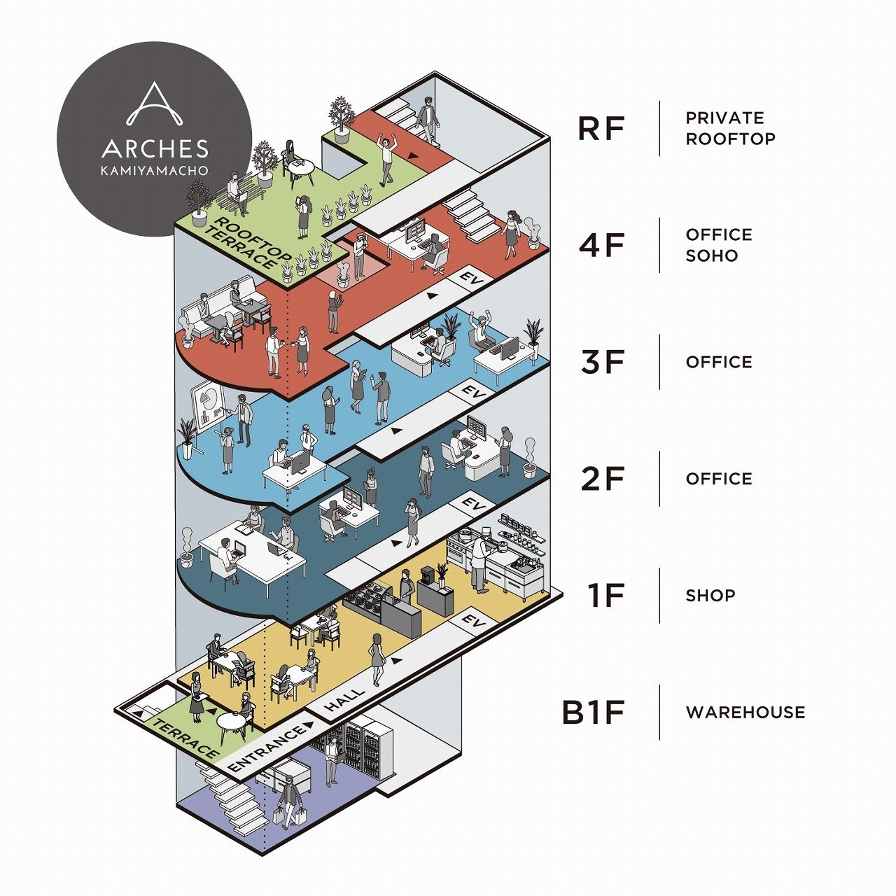 奥渋エリアに位置する築31年の複合ビルをリノベーション「ARCHES KAMIYAMACHO(アーチーズ神山町)」が2023年9月オープン