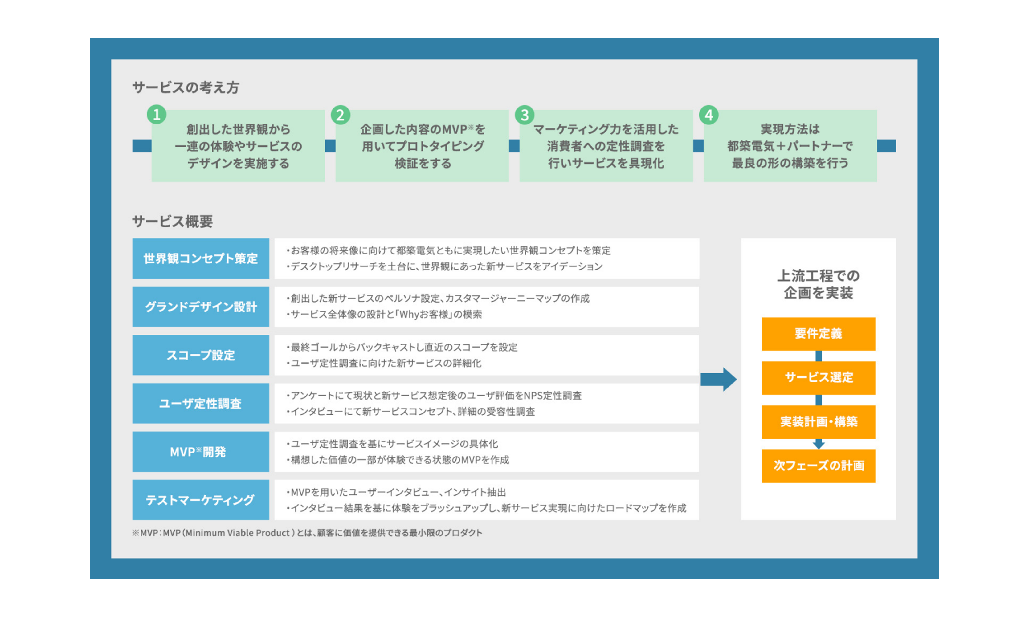 お客様の新規サービス創出に向けた一連のプロセスを提案するマーケティングサービスです。