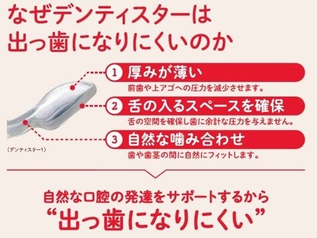 ➡デンティスターは、おしゃぶりで発達する歯に与える圧力を少なくし、自然な口腔の発達をやさしくサポートします。