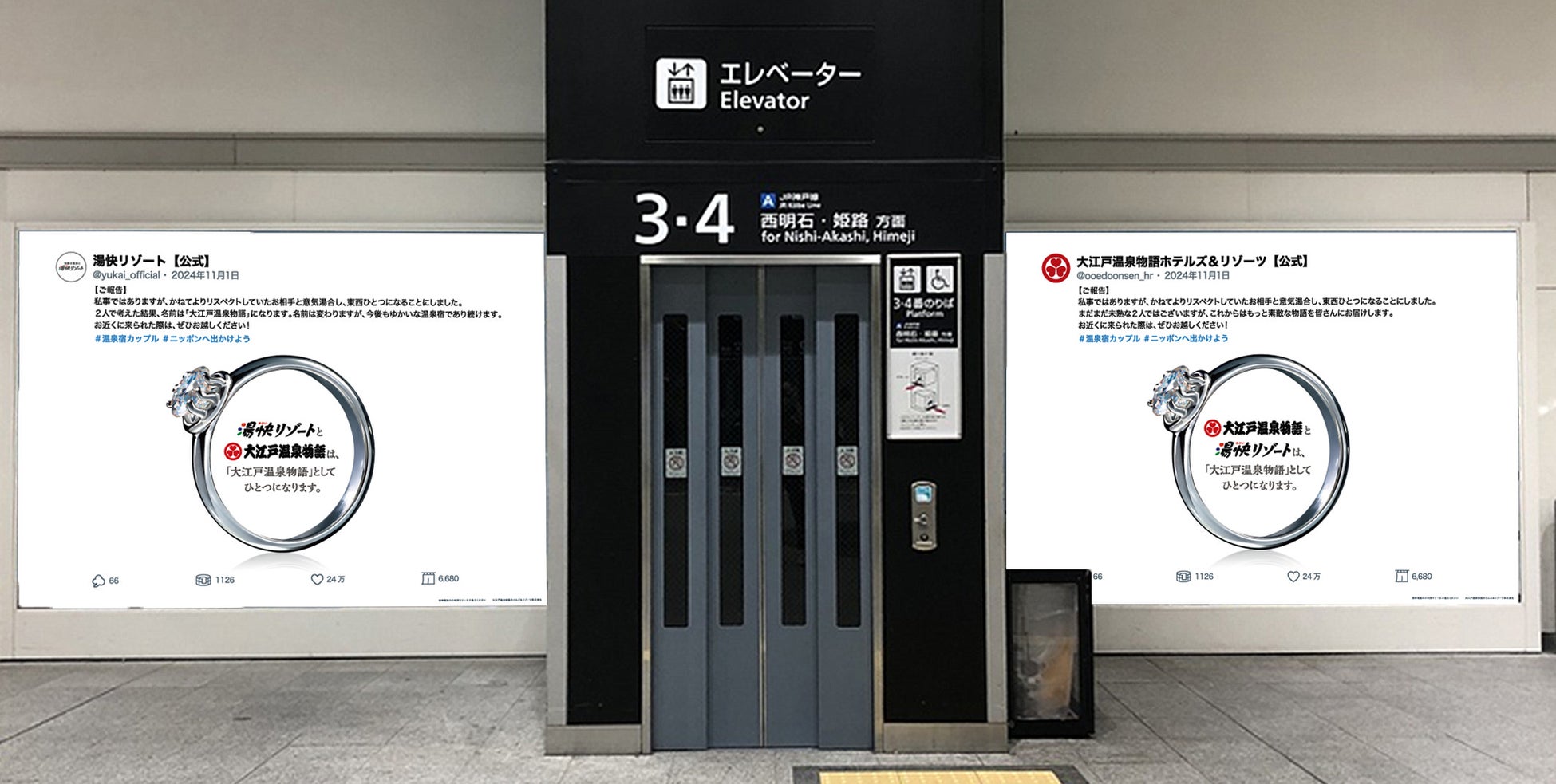 大江戸温泉物語と湯快リゾートが“結婚報告”ならぬ“統合報告”!10月28日より東京、大阪の7箇所で交通広告を掲出