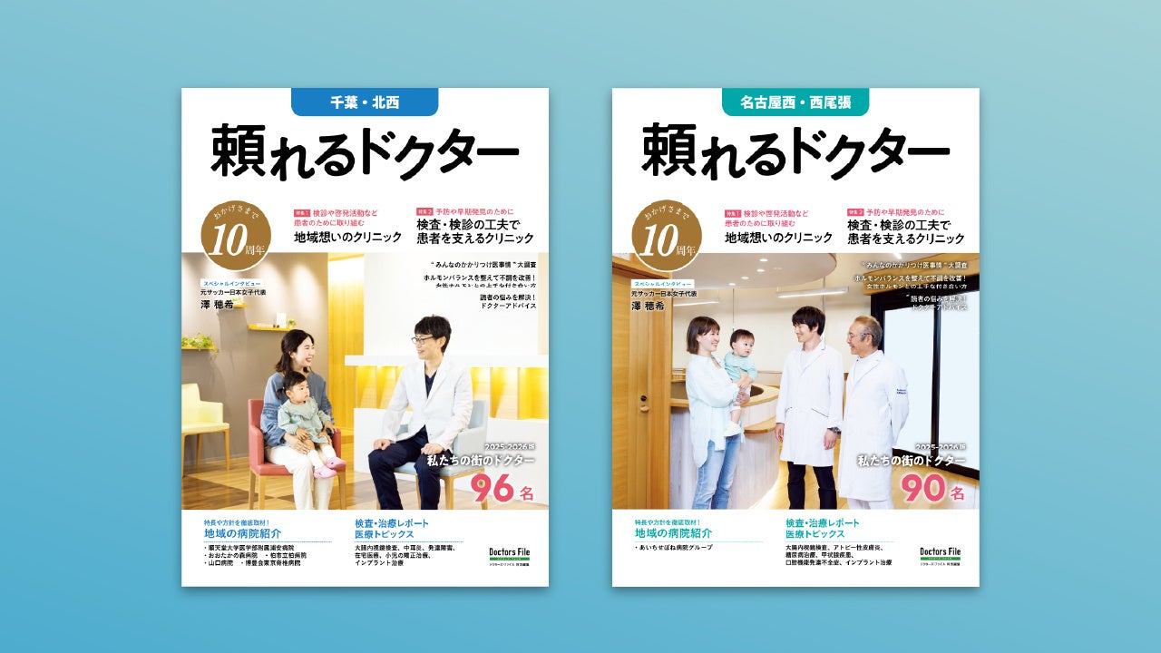 また、2025年9⽉30⽇発売の『千葉・北西 vol.10 2025-2026版(https://doctorsfile.jp/book/2025av/)』『 名古屋西・西尾張 vol.10 2025-2026版(https://doctorsfile.jp/book/2025aw/)』は、ともに10版目の発行となりました。これからも地域の⽅々から寄せられた「先⽣の人となりを知って安心して受診したい」「ドクターの診療⽅針を知りたい」といった想いに応えてまいります。