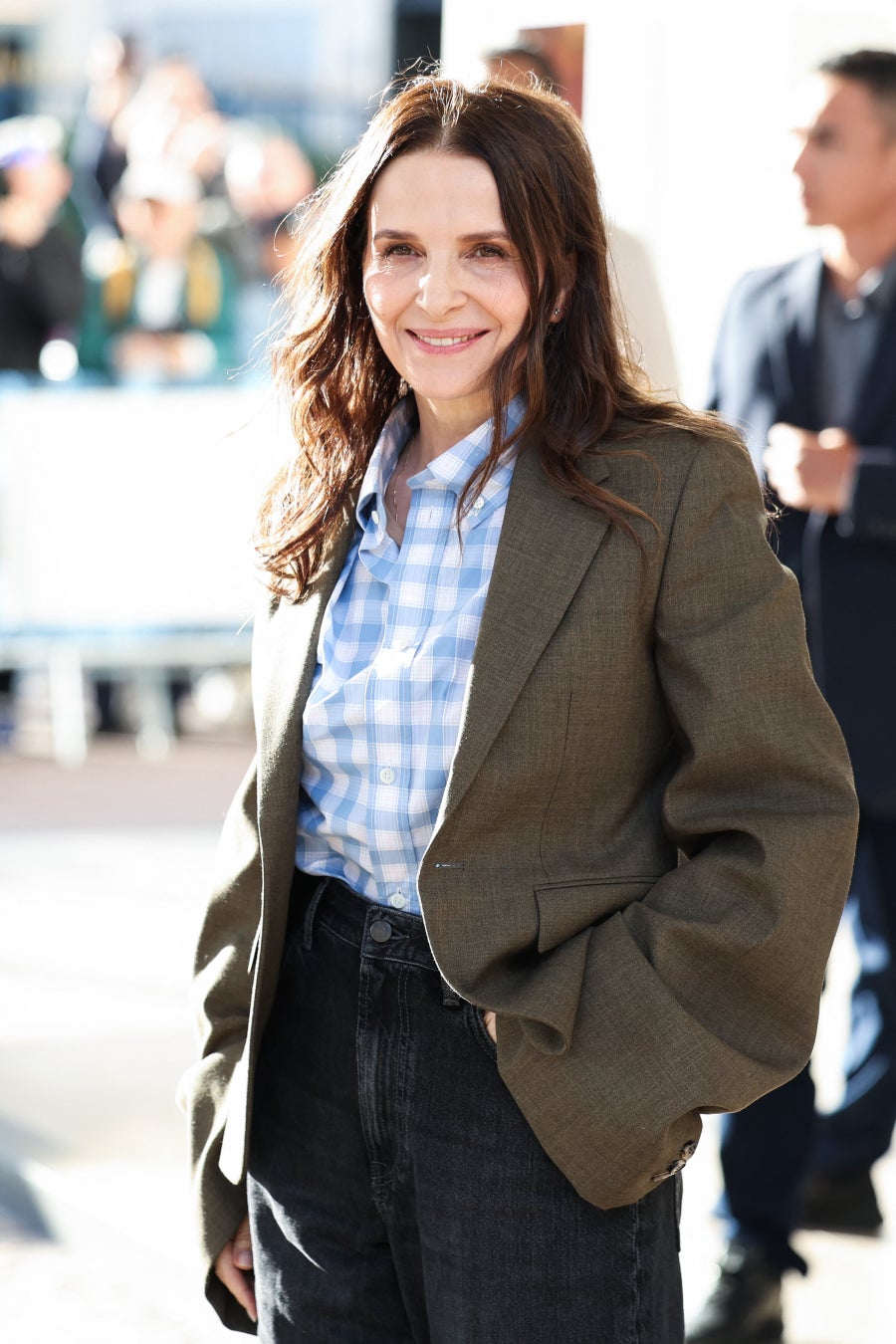 審査委員長を務めるジュリエット・ビノシュは2025春夏ウィメンズコレクションのクロップドジャケットとコットンシャツを着用しました。