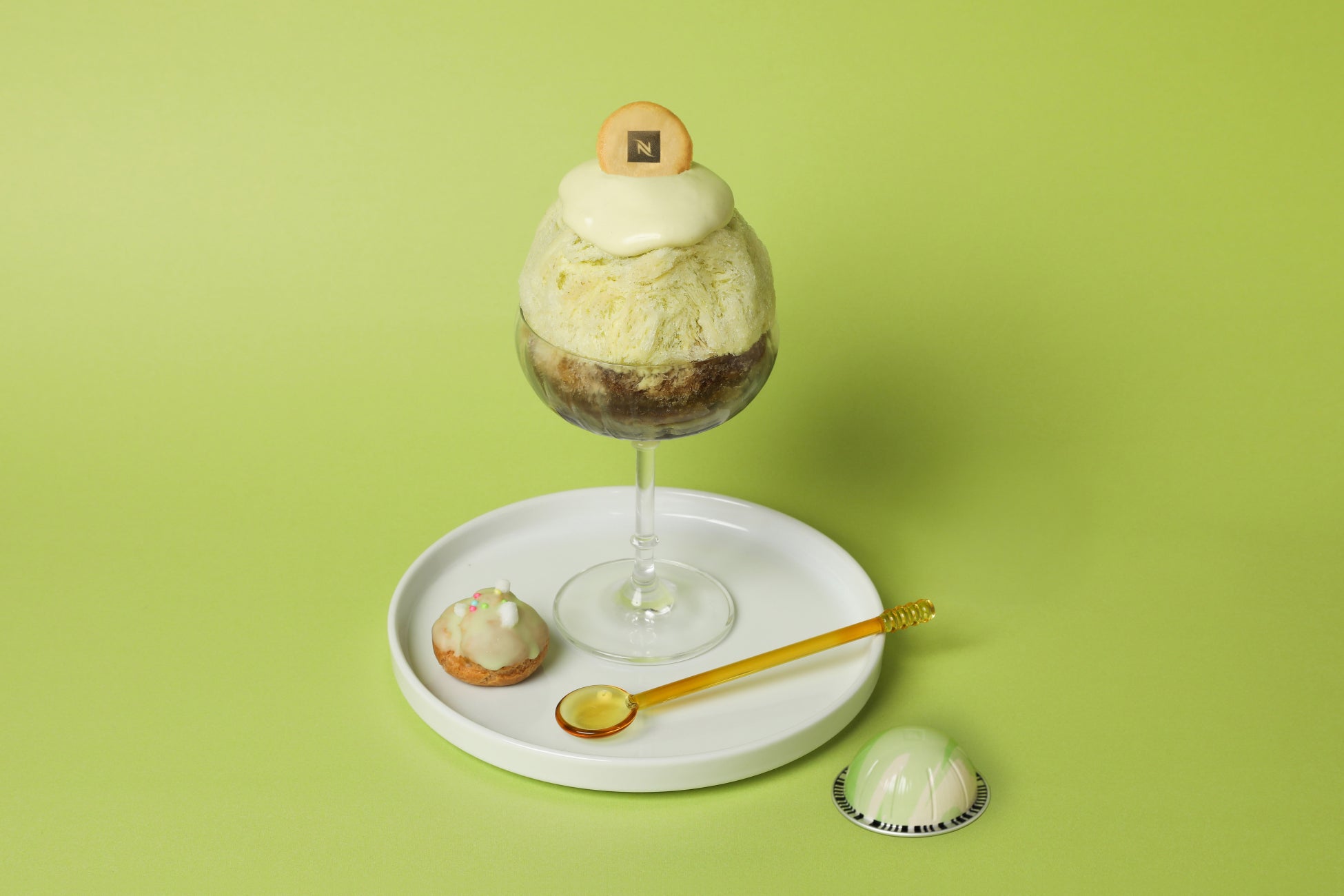 また、今年の夏を彩る味わい「ピスタチオ バニラ フレーバー オーバー アイス」を、より“クール”なアレンジでお楽しみいただく、ネスプレッソオリジナルのかき氷が数量限定で登場(※2)します。見た目も味わいもポップに仕上げた、このイベント会場でしか味わえない特別なかき氷をお楽しみください。