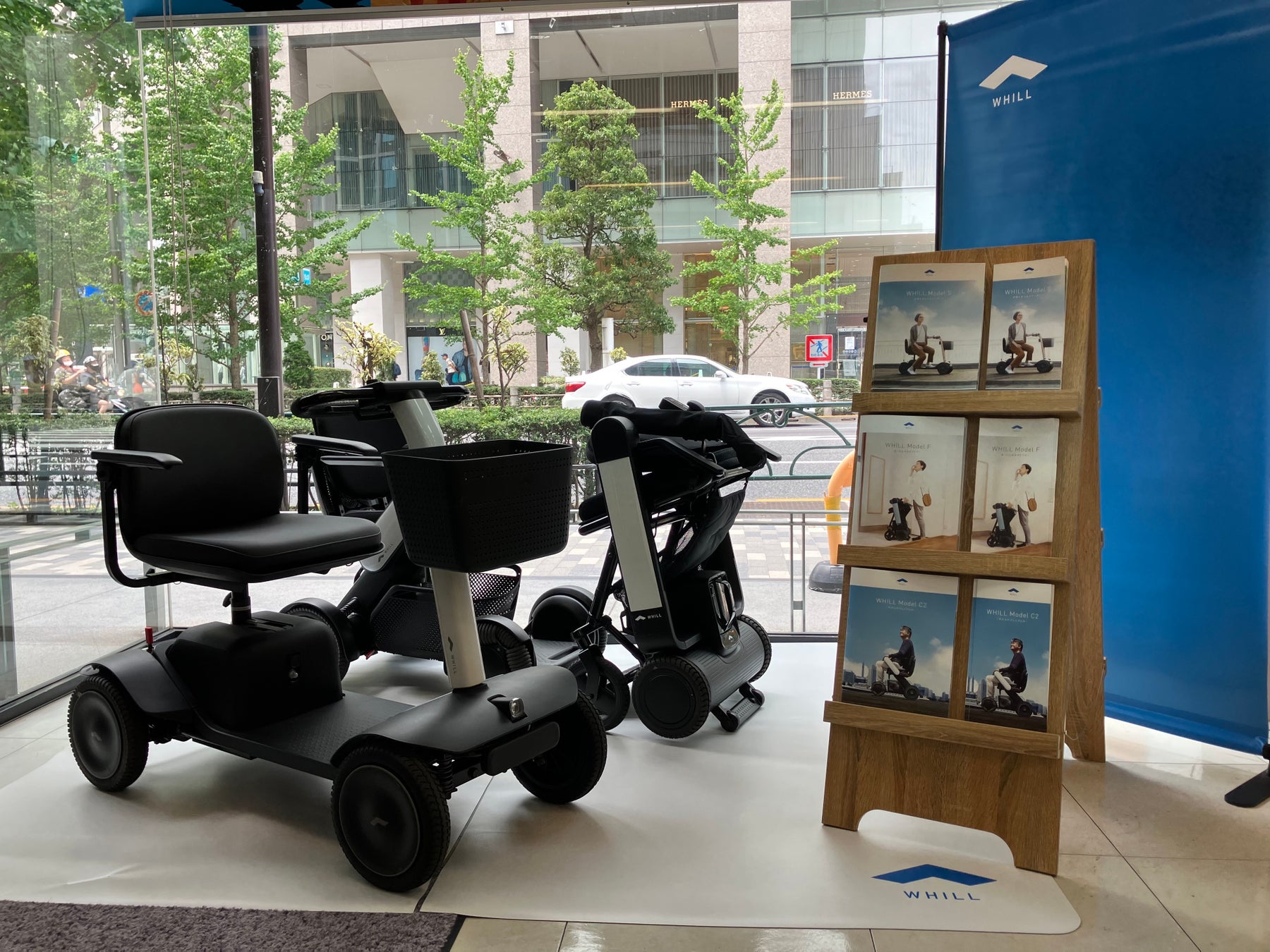 WHILLは免許不要で歩行領域を走行できる近距離モビリティです。Model C2は高いデザイン性と5cmの段差乗り越え、後輪を軸にその場で一回転できる小回り能力、リアサスペンションを採用した滑らかな乗り心地などを特長とし、Model Fは軽量化を実現した折りたためるモデルです。Model SはWHILL社初となる歩道を走れるスクータータイプで、ハンドルがあることで、より安定してより長く走ることができ、免許返納後や自転車からの乗り換えなどに適したモデルです。製品について:https://whill.inc/jp/