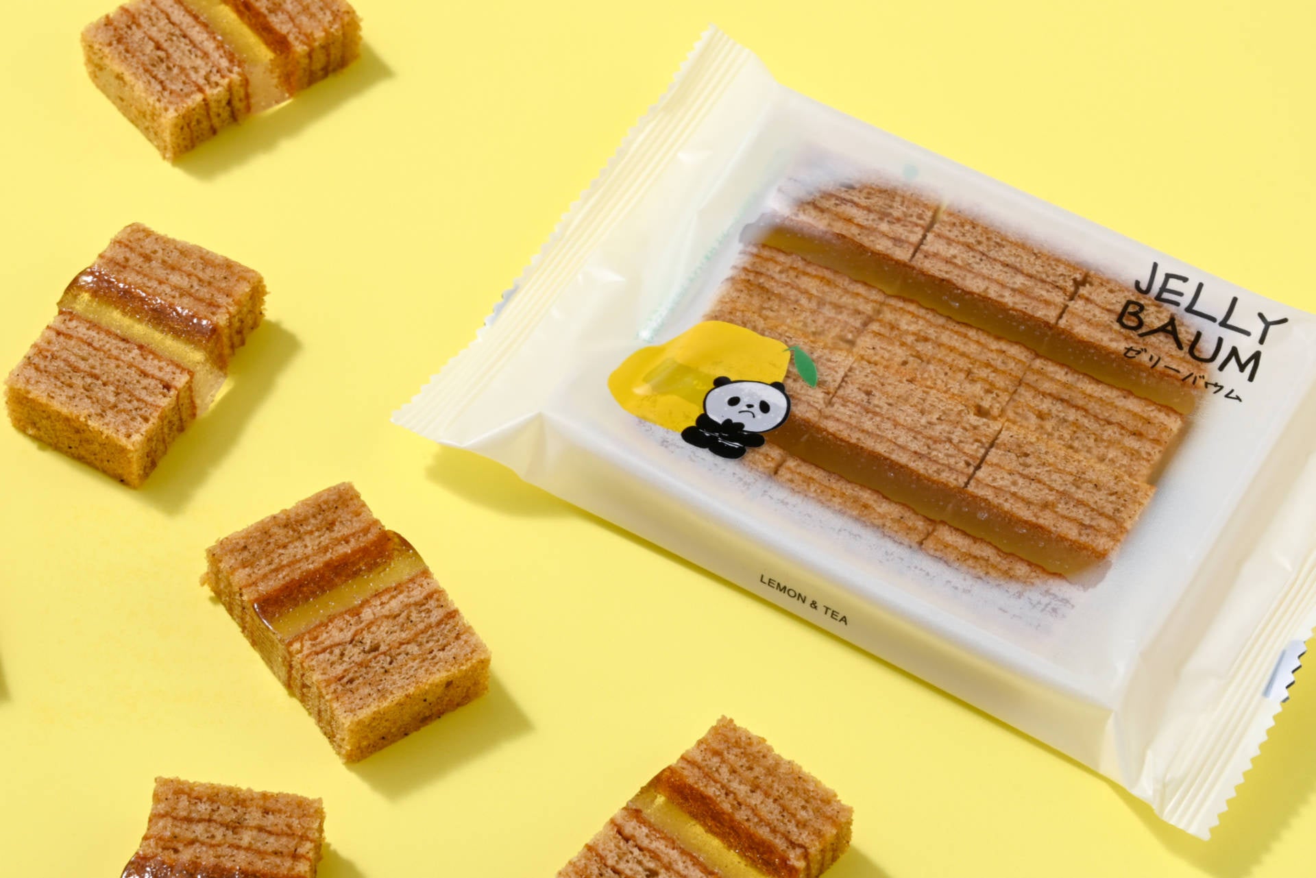 昨年夏に登場し、大好評だった「ゼリーバウム(レモン&紅茶)」が、あらかじめカットしたスタイルになって新登場。すっきりとしたレモンゼリーを、紅茶生地のバウムでサンドしました。小さなピックつきで気軽に楽しむことができ、お出かけ先やお仕事の合間のおやつにもおすすめの一品です。