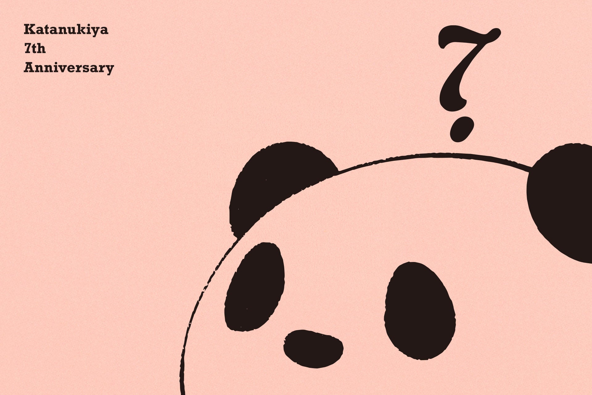 カタヌキヤが7周年を迎える4月18日(土)より、直営店店頭でカタヌキヤ商品をご購入いただいたお客様へ、先着でお渡しします。「7」にふたごのパンダがぎゅっと抱きついた、7周年記念アートのステッカーです。