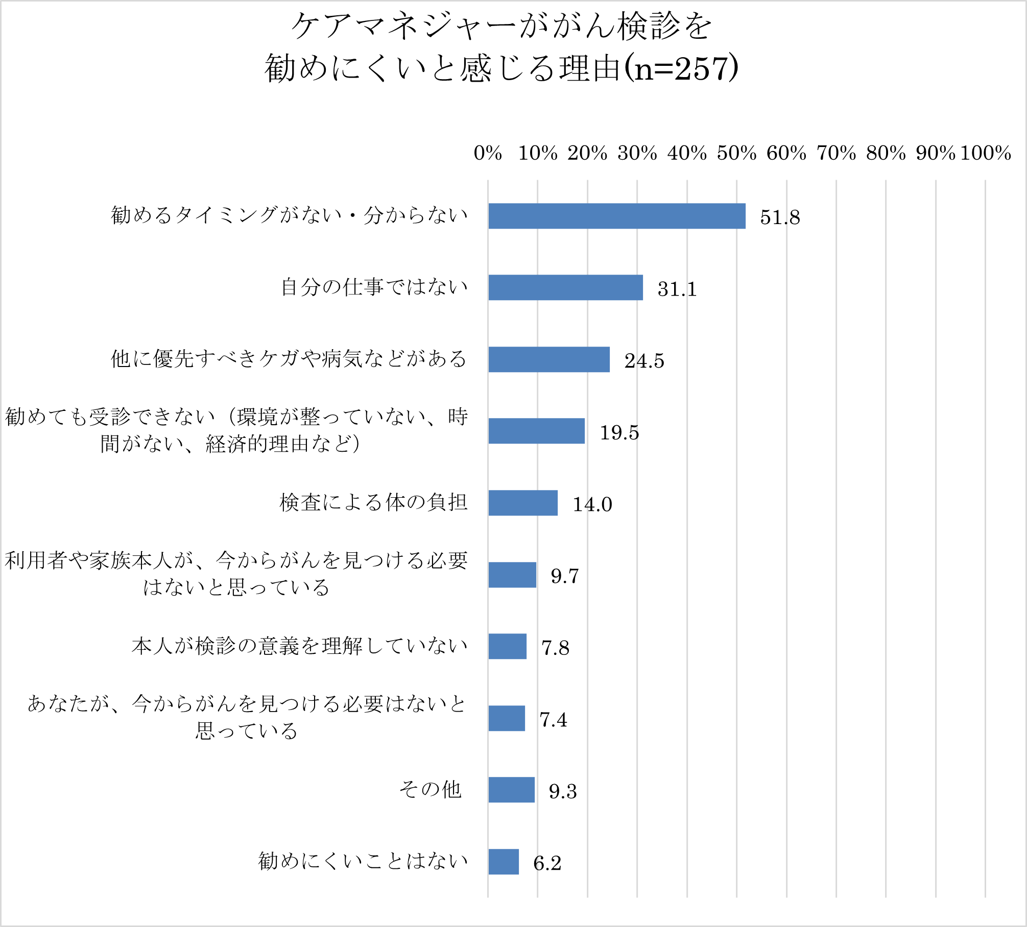 ケアマネジメント上のリスクがあることを理解しながらも、多くのケアマネジャーががん検診を勧められない理由は何なのでしょうか。