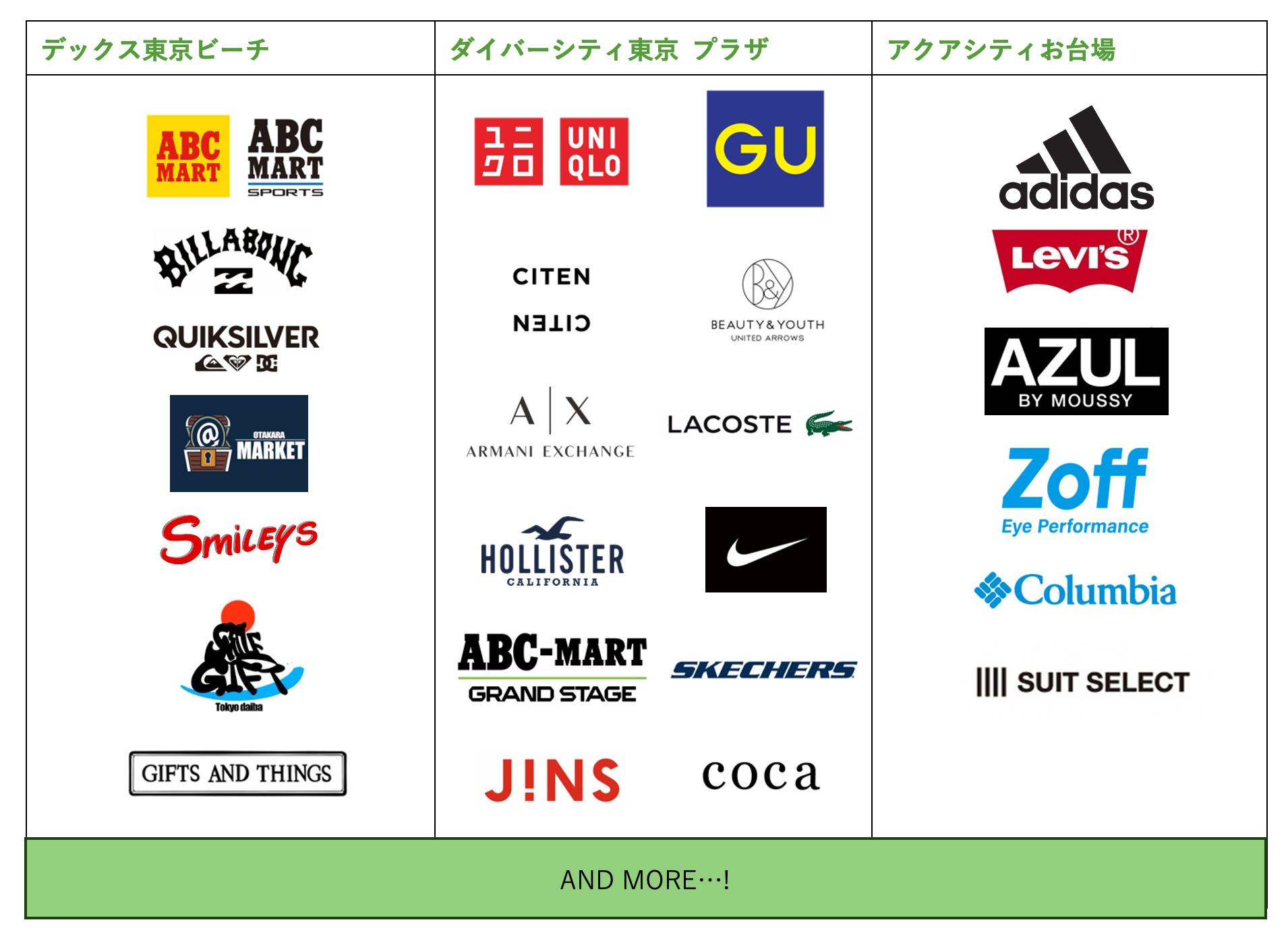 デックス東京ビーチ、ダイバーシティ東京 プラザ、アクアシティお台場にて開催される各施設のイベントの他、毎年恒例、計100店舗以上で最大70%OFFとなる「お台場ーゲン」も開催!