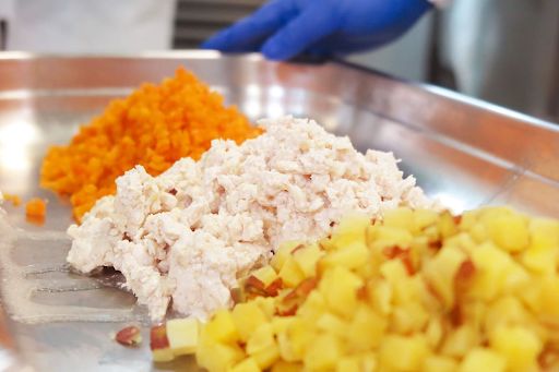 ペトコトフーズは人間の食品を製造する工場で製造しています。温度管理、二次殺菌、微生物検査、X線検査などの衛生・品質管理を徹底し、人の食品と同じ基準のキッチンで製造管理しています。