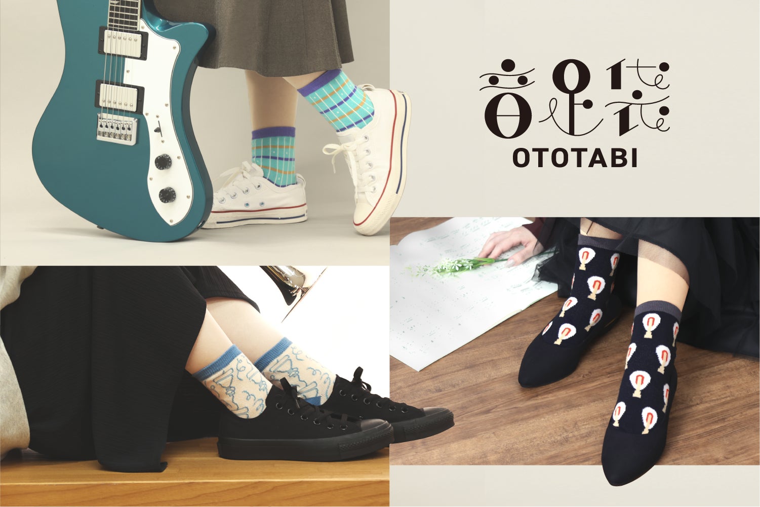 「音楽や楽器の楽しさを日常生活でも感じてもらいたい」そんな思いを込めて企画した「音足袋 -OTOTABI-」。楽器をモチーフにしたデザインがポイントです。いつものコーディネートに音楽の彩りを加えてみませんか?