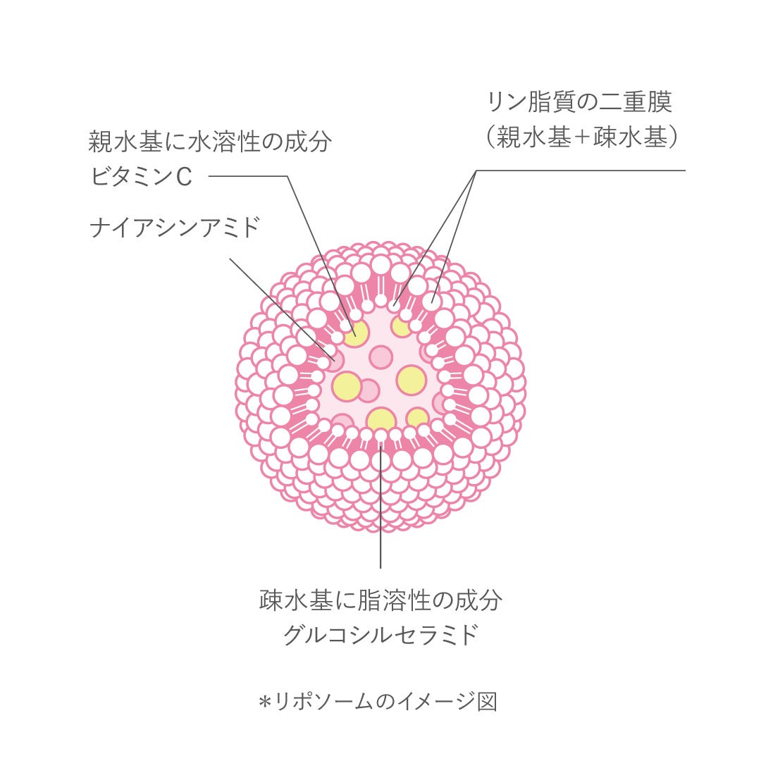 C+Ceraでは、Lypo-Cがこれまで培ってきたリポ・カプセルテクノロジーを採用しています。水溶性の成分と脂溶性の成分を一つのカプセルに包み込むことで、日常の中でも取り入れやすい形を目指しました。