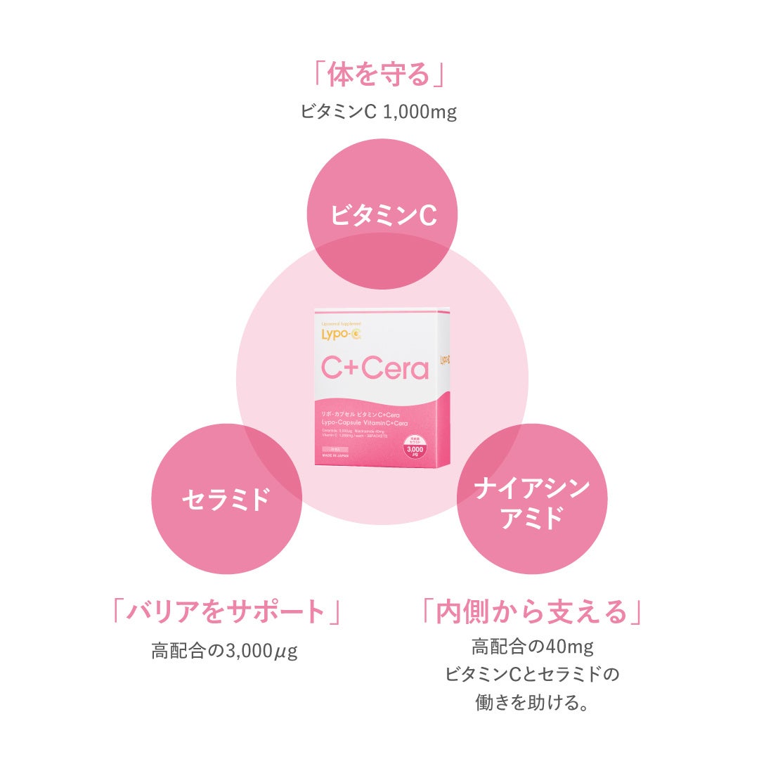 本製品は、これまで美容成分として注目されてきたセラミドの価値を、Lypo-Cならではの“届ける”発想で健康の文脈からとらえ直し、ゆらぎやすい日常でも無理なく続けられるようにしたインナーケアです。