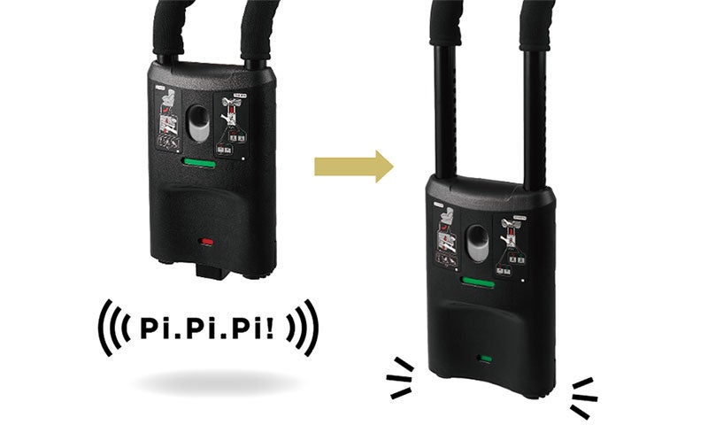 サポートレッグが車内の床面にしっかり接地していない場合、チャイルドシートが安全性能を充分に発揮できないため、アラーム音で警告しミスユースを防止