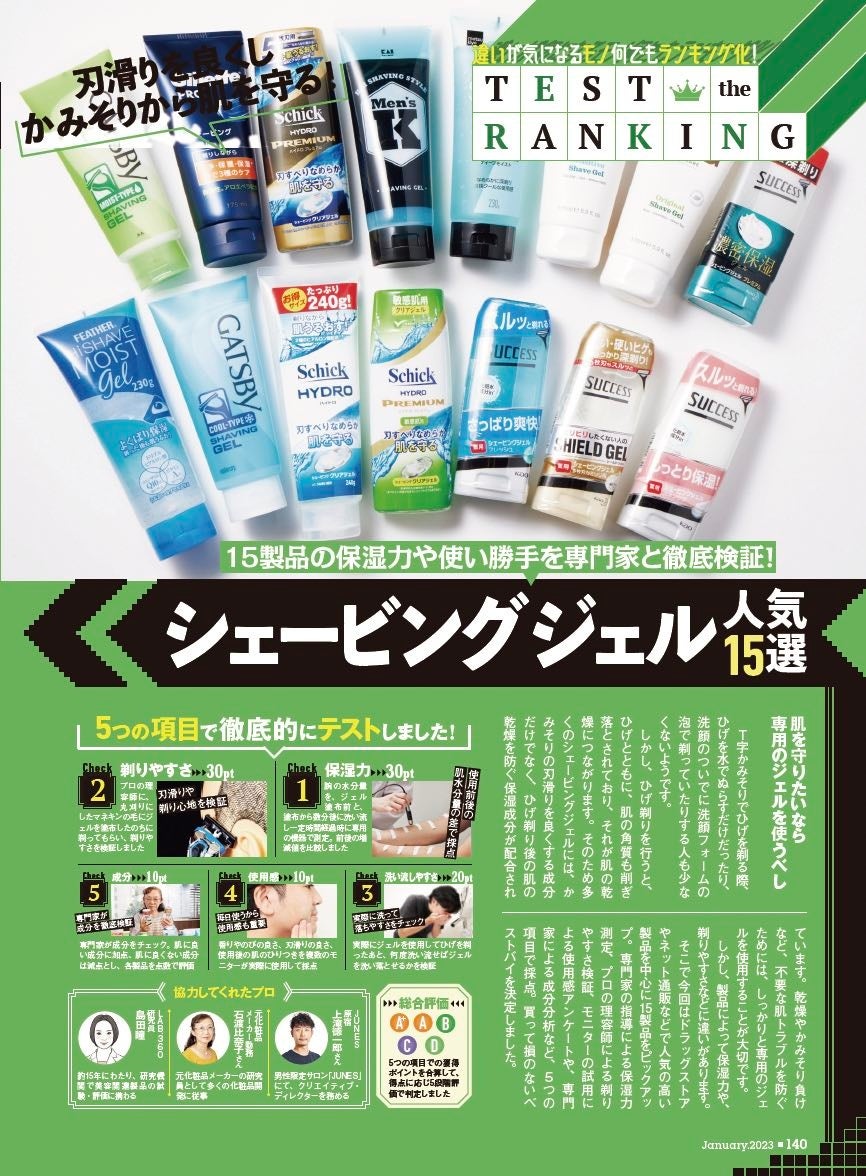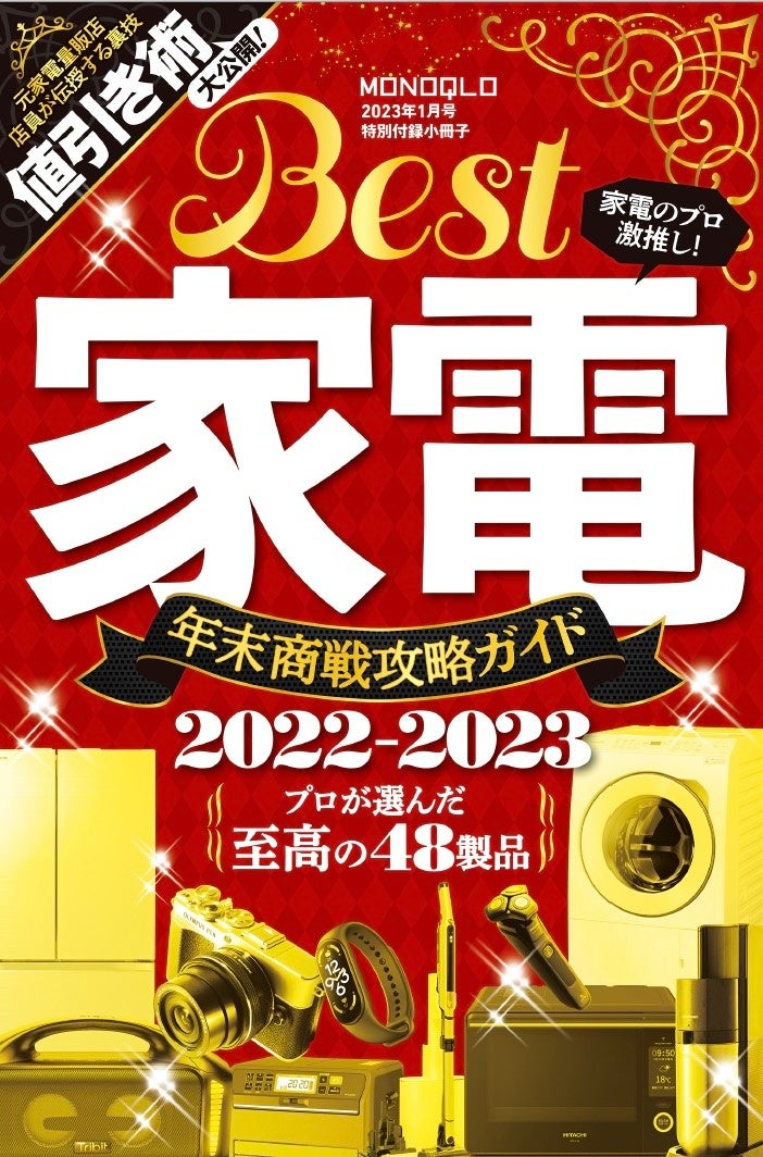 2023年1月号は、年末特大号!! エンタメガジェットから最高の睡眠アイテムまで、広告・ヤラセ一切なしの“本当に良いモノ”だけを集めた「ベストバイ・オブ・ザ・イヤー」を大発表! さらに、1年間で見つけたお得ネタを紹介する「マネー・オブ・ザ・イヤー」など、この1年間の感謝を込めて編集部が自信を持ってオススメしたい「本当に手に入れるべき最高に良いモノ・サービス」をお届け。そのほかにも、男の肌を乾燥&カミソリ負けから守る「シェービングジェル人気15選」や、プロ激推しの最強家電がわかる「BEST家電2022-2023 年末商戦攻略ガイド」が特別付録としてついてくるお得な号になっています。本リリースでは、編集部が“本当におすすめできる”製品の⼀部をご紹介します。
