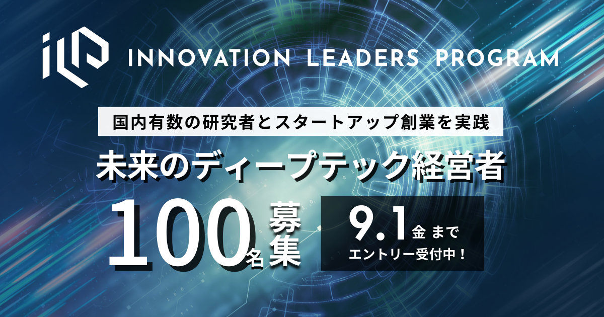 【挑戦者100名募集】次世代の大学発・ディープテック経営者を育成する「INNOVATION LEADERS PROGRAM」(ILP)14期募集開始