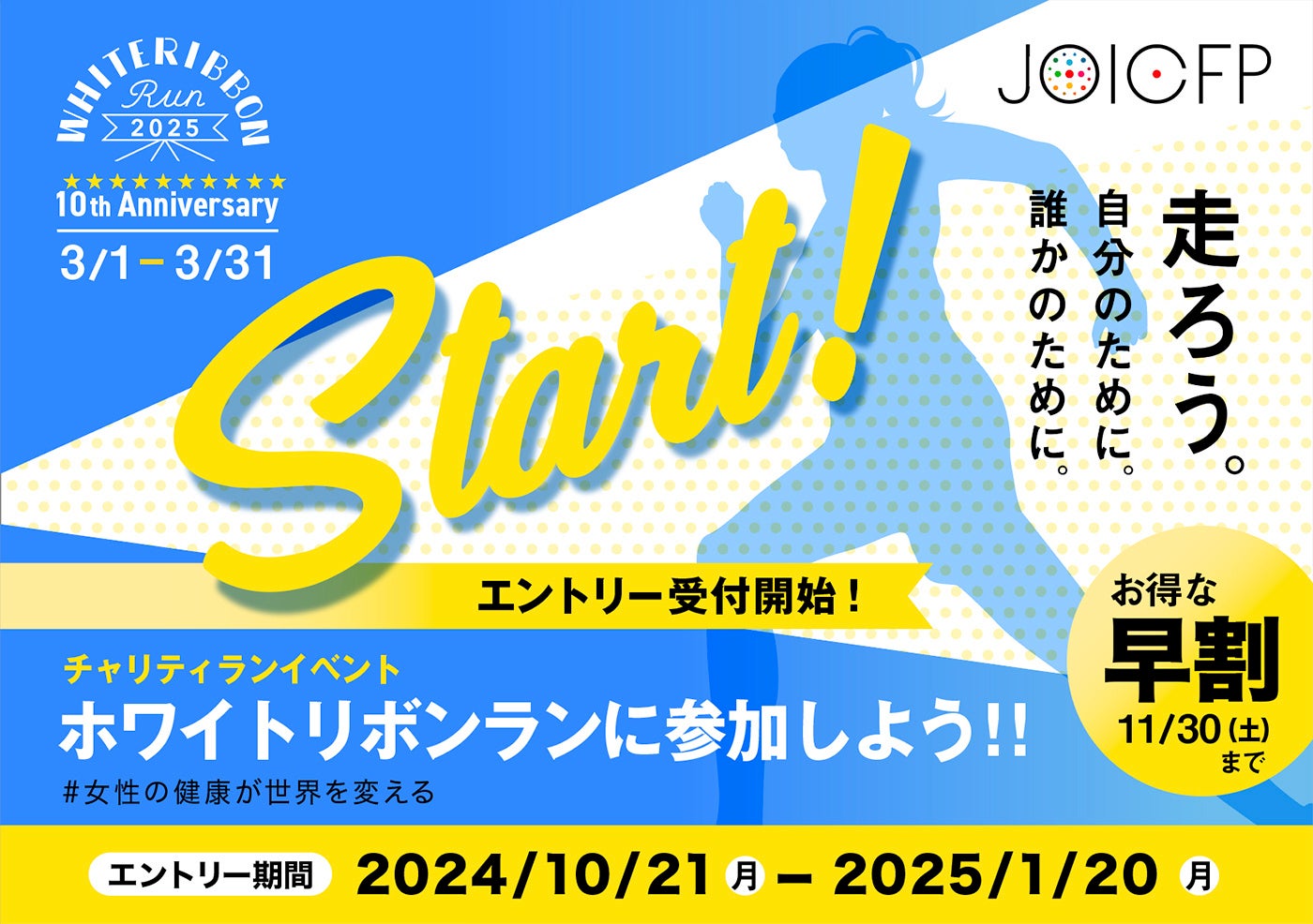 2025年3月で10回目を迎えるホワイトリボンランは「走ろう。自分のために。誰かのために。」を合言葉に、国際女性デーのある3月に国際協力NGOジョイセフが主催するチャリティイベントです。