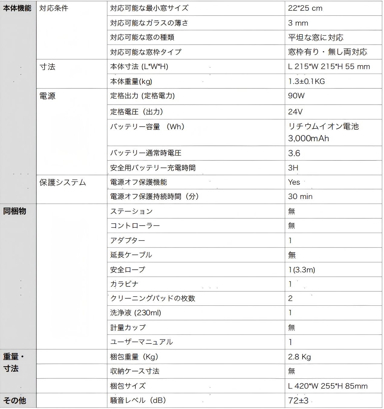 窓拭きロボットとしては圧倒的な最大7,500Paという吸着力、密着性が高いクリーニングクロス、特許取得済みのフローティングホルダー、空気漏れを検知し補正する自動気圧補正機能、停電に対処するブラックアウト保護機能、引張強度1,900N以上の安全ロープなど9段階の多重保護システムが、窓面への固定力アップと落下防止を目的に改良/新規導入されました。本体の向きを追跡する重力加速度センサー、ガラスの端を検出する光結合センサーで構成されるデュアルインテリジェントセンサーは、 落下防止など安全性の確保とともに清掃の効率性を高めます。