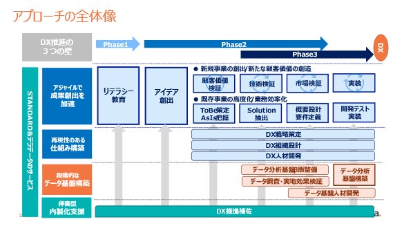 このサービスにより、新薬開発などますます競争の激化する製薬業界において、必要性や緊急性は充分認識しつつも社内外からのリソース確保などが障害となってDX推進に遅れが生じている製薬企業も、確立されたプロセスに沿ってDXを推進できるようになり、タイムリーにビジネス成果につなげて業界における競争優位性を高められるようになります。