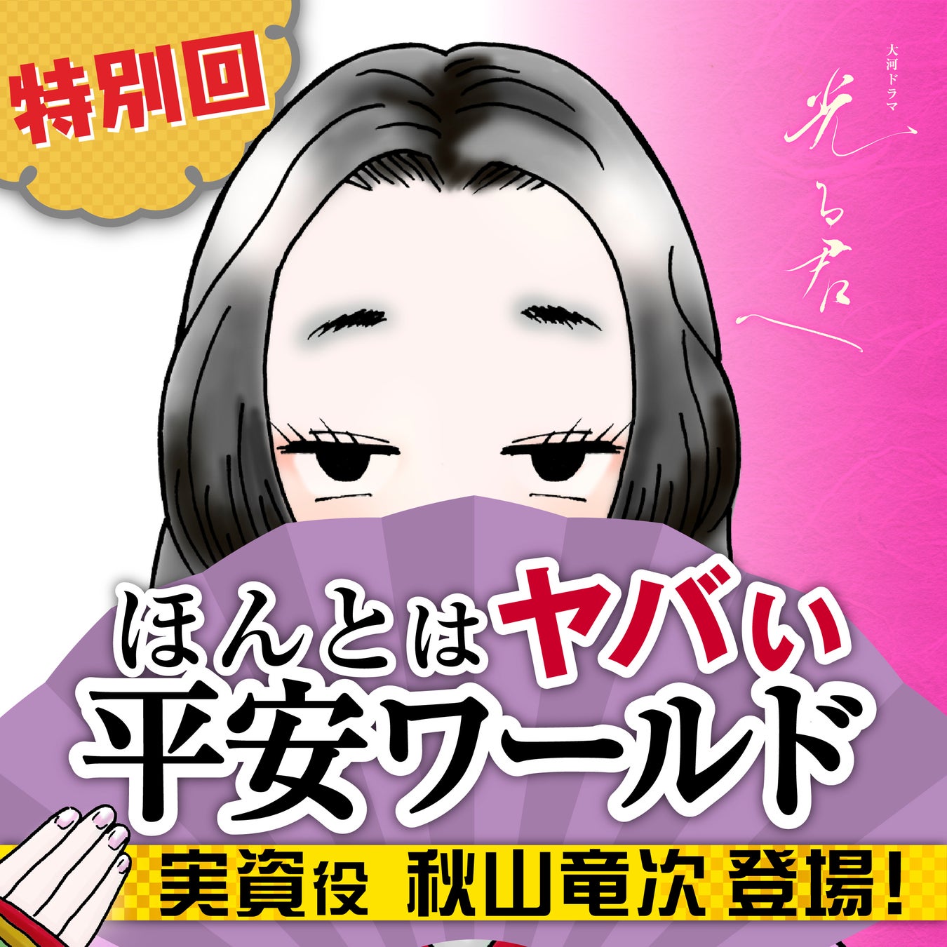 〇特別回【9月2日配信回】:藤原実資(さねすけ)役を好演した秋山竜次さんが登場。個性的な存在感を放つ藤原実資役を演じる秋山竜次さんに特別インタビュー!大河ドラマのヤバい裏話や役作りの秘密に迫ります!