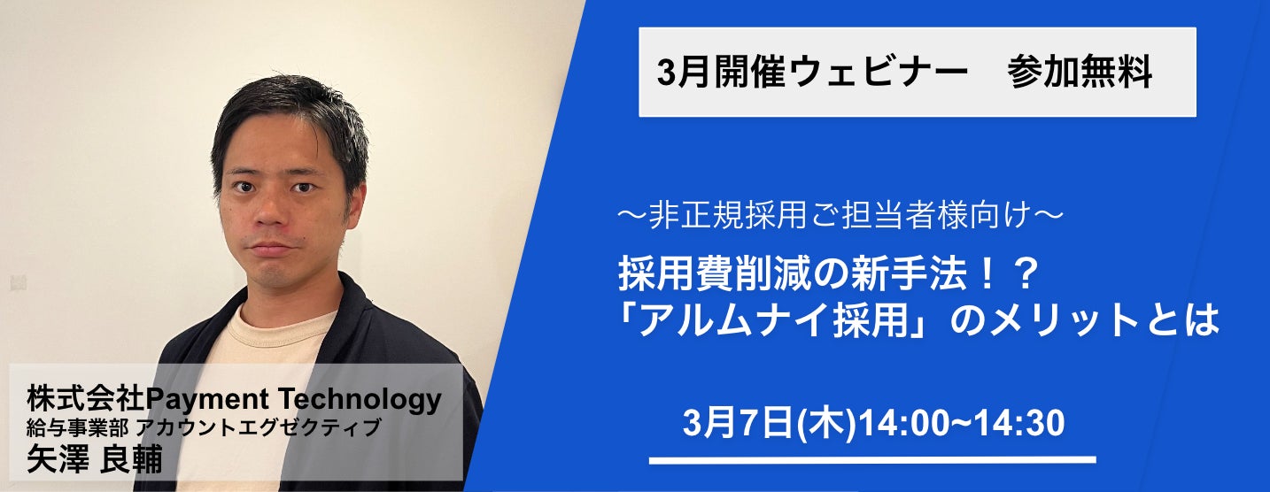 <人材獲得に関する解説ウェビナーのお知らせ>『採用費削減の新手法!?アルムナイ採用のメリットとは』を開催
