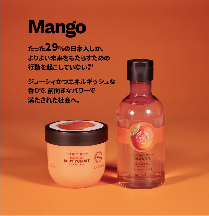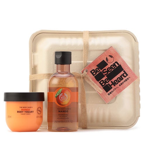 日本においては、2022 年5 月19 日(木)より、「Be Seen.Be Heard. 若者のパワー、未来の可能性へ」と題して、キャンペーンを始動。キャンペーン開始を記念して、全国のザボディショップ店舗(※一部店舗除く)及びオンラインショップにて、人気のボディケアやスキンケア製品を組み合わせた限定キットを発売いたします。また、合計12,000 円(税込)以上をお買い上げのLove YourBody 会員様に、キャンペーンロゴとマニフェストが描かれたオリジナルエコバッグをプレゼントいたします。(※なくなり次第終了)