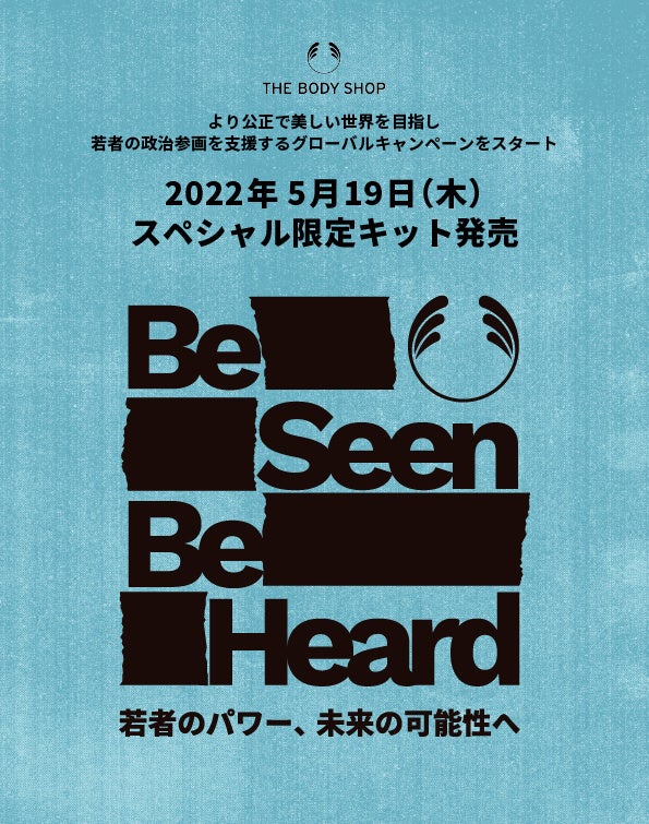「Be Seen. Be Heard. 」 は、これからの社会や未来を担う若者に目を向け、若者の声を聞き、社会に真の変化を起こすため“若者の政治参画”を支援するキャンペーンです。今年から3 年かけて、6 大陸にまたがる75 以上の国に存在するザボディショップの2,600 店舗で展開していきます。
